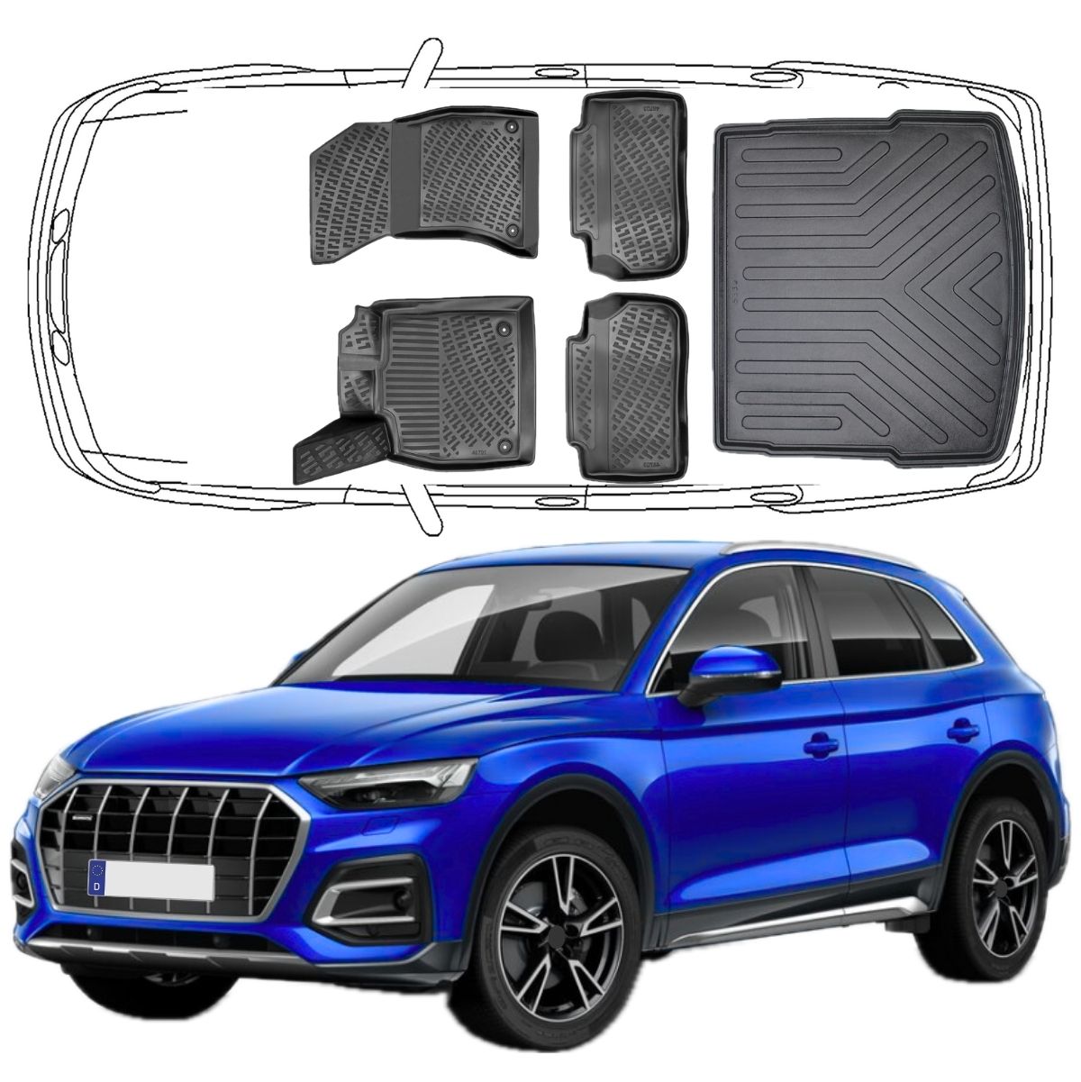 Maximaler Schutz trifft auf perfekte Passform: Die passgenauen Trimak Gummimatten wurden mithilfe modernster 3D-Laserscantechnologie speziell für den 3D Auto Fußmatten & Kofferraumwanne Set Kompatibel mit Audi Q5 FY 2017-2024 entwickelt.