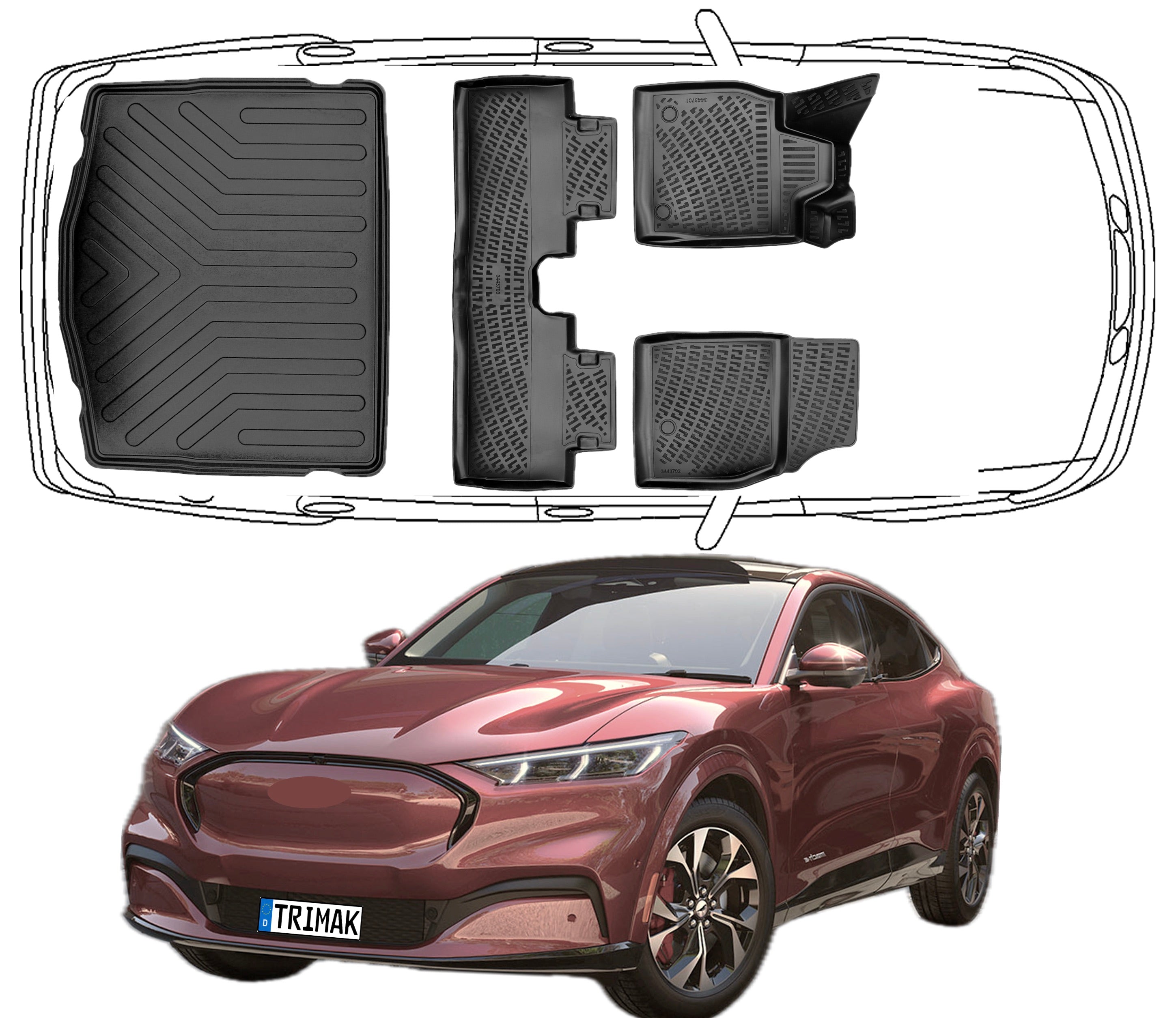 Maximaler Schutz trifft auf perfekte Passform: Die passgenauen Trimak Gummimatten wurden mithilfe modernster 3D-Laserscantechnologie speziell für den 3D Auto Fußmatten & Kofferraumwanne Set Kompatibel mit Ford Mustang Mach-E 2020 - 2026 entwickelt.