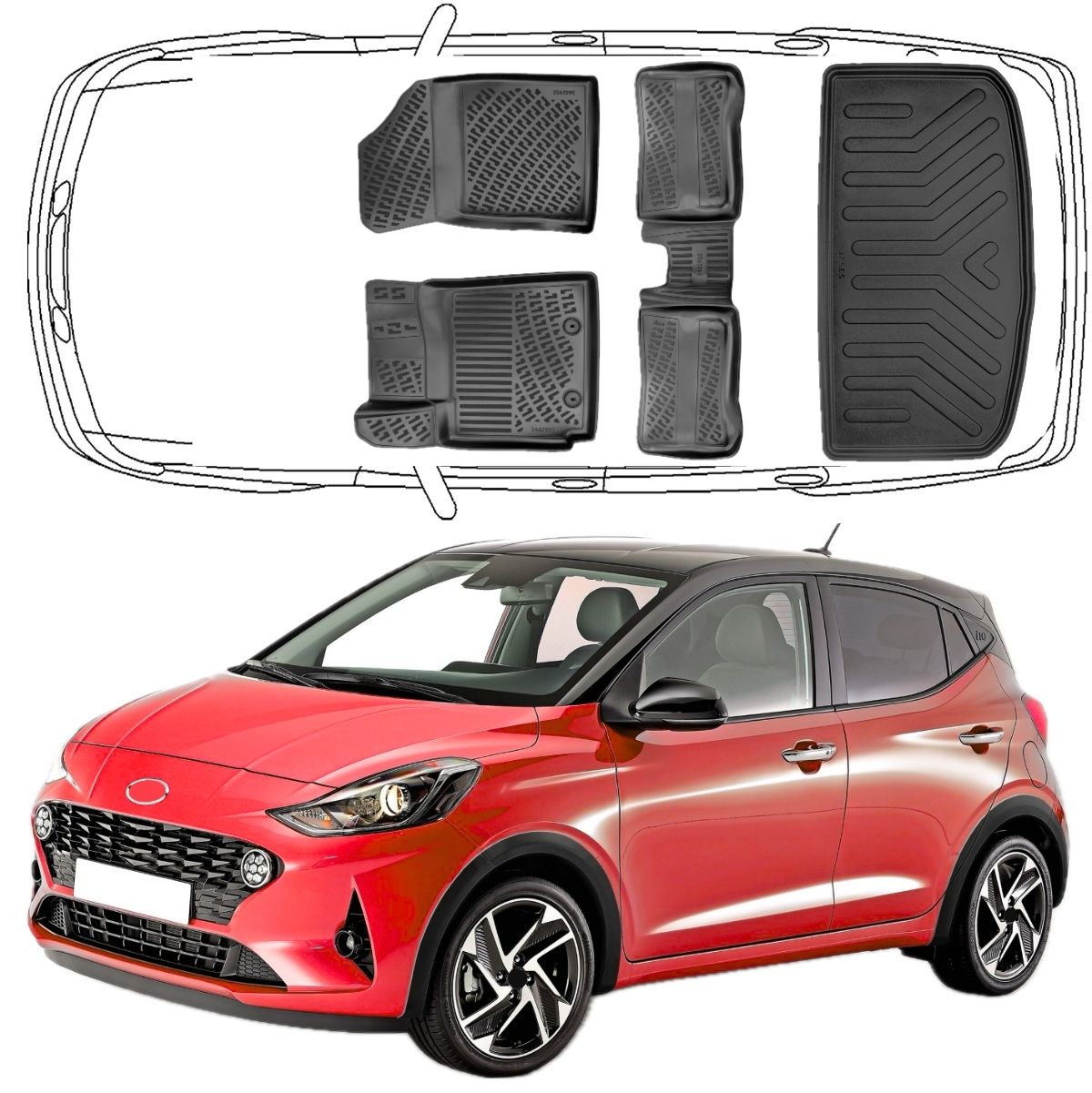 Maximaler Schutz trifft auf perfekte Passform: Die passgenauen Trimak Gummimatten wurden mithilfe modernster 3D-Laserscantechnologie speziell für den 3D Auto Fußmatten & Kofferraumwanne Set Kompatibel mit Hyundai i10 3.Gen Typ AC3 ab 2019 entwickelt.
