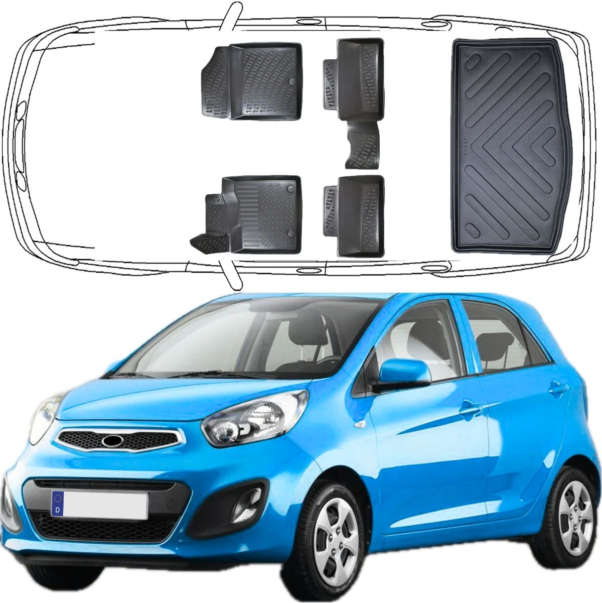 Maximaler Schutz trifft auf perfekte Passform: Die passgenauen Trimak Gummimatten wurden mithilfe modernster 3D-Laserscantechnologie speziell für den 3D Auto Fußmatten & Kofferraumwanne Set Kompatibel mit KIA Picanto 2.Gen Typ TA 2011-2017 entwickelt.