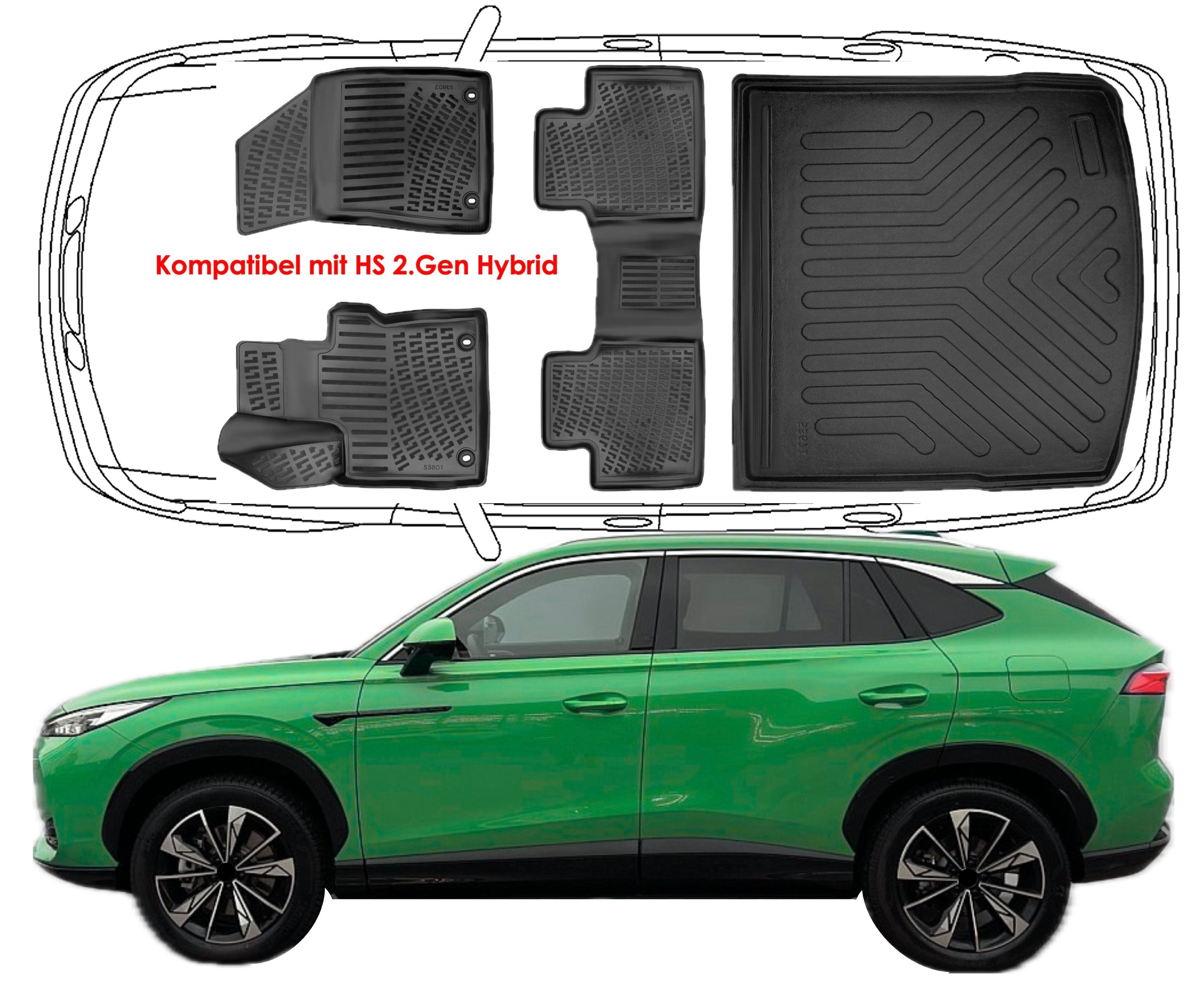 Maximaler Schutz trifft auf perfekte Passform: Die passgenauen Trimak Gummimatten wurden mithilfe modernster 3D-Laserscantechnologie speziell für den 3D Auto Fußmatten & Kofferraumwanne Set Kompatibel mit MG HS 2.Gen PHEV ab 2024 entwickelt.