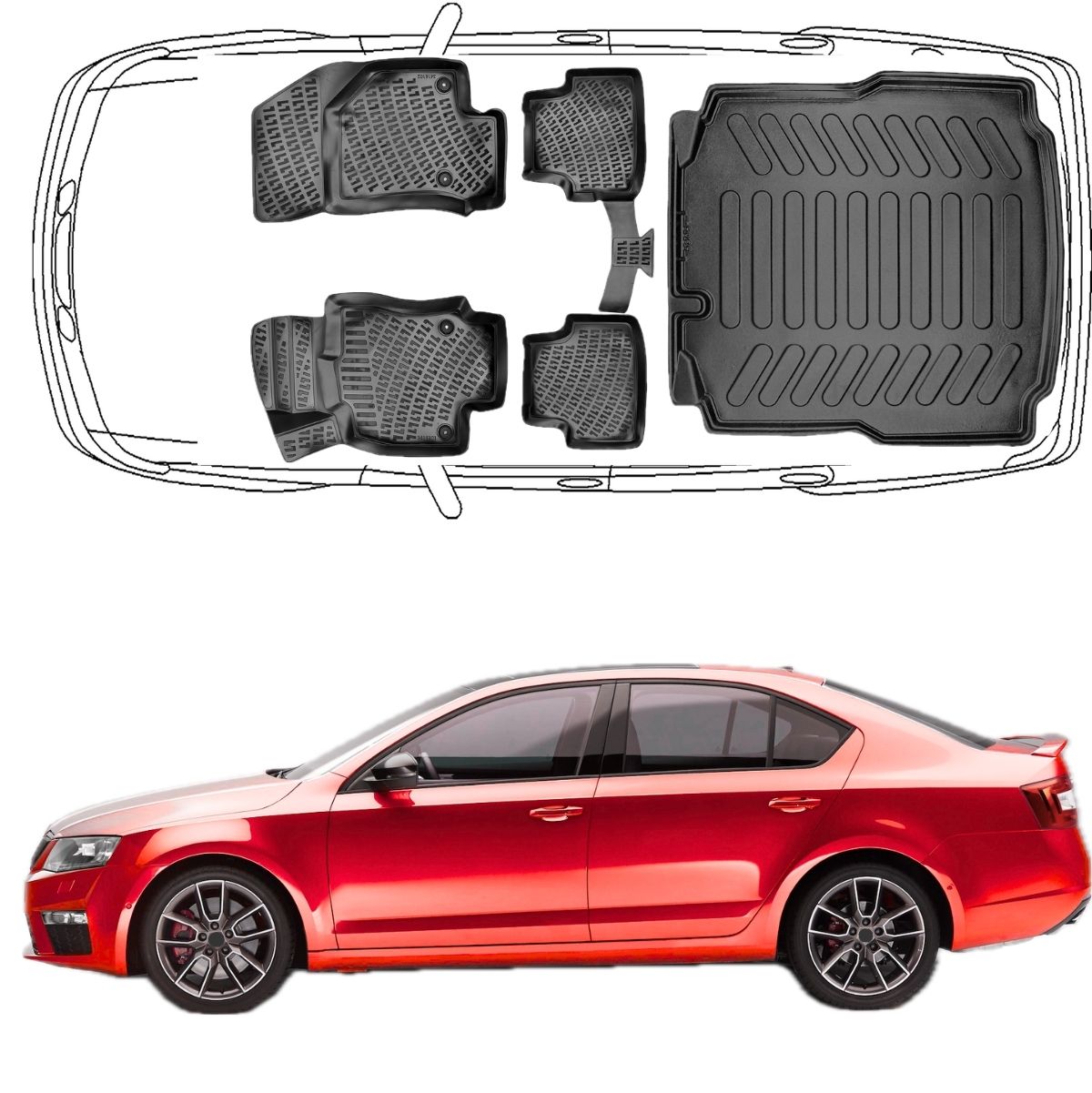 Trimak 3D Gummifußmatten für 3D Auto Fußmatten & Kofferraumwanne Set Kompatibel mit Skoda Octavia III 2013-2020 Sedan Limousine