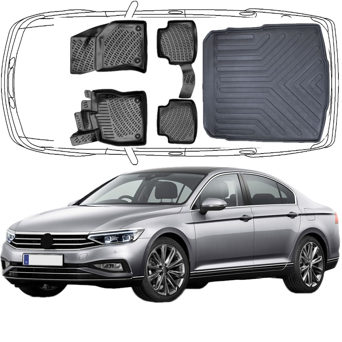 3D Auto Fußmatten & Kofferraumwanne Set Kompatibel mit VW Passat B8 Typ 3G 2015-2023 Sedan Limousine