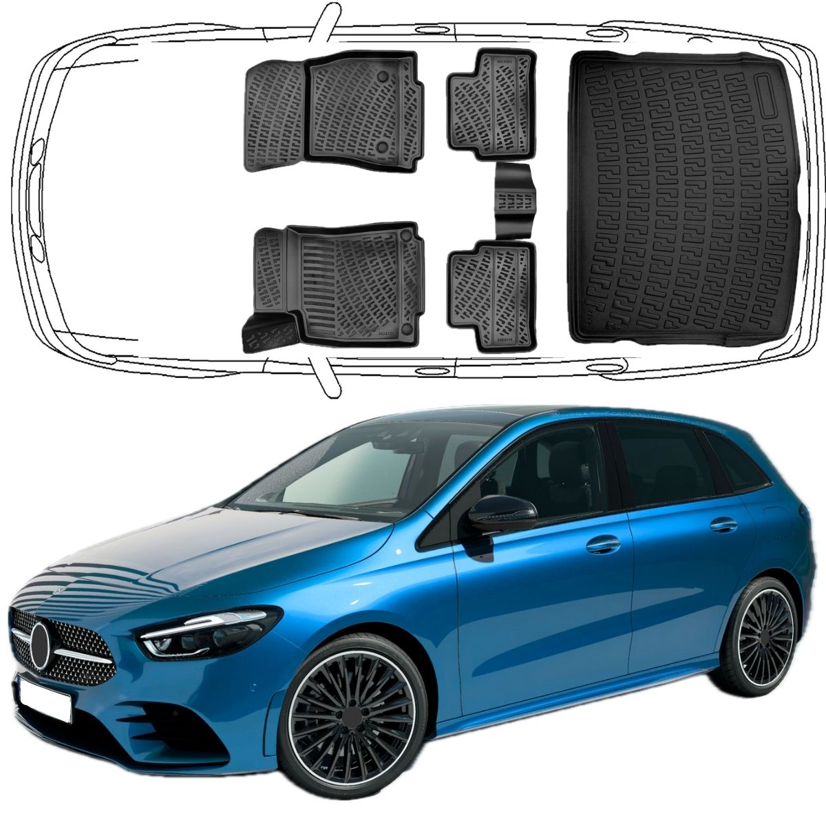 3D Auto Fußmatten & Obere Kofferraumwanne Set Kompatibel mit Mercedes B Klasse W247 ab 2018