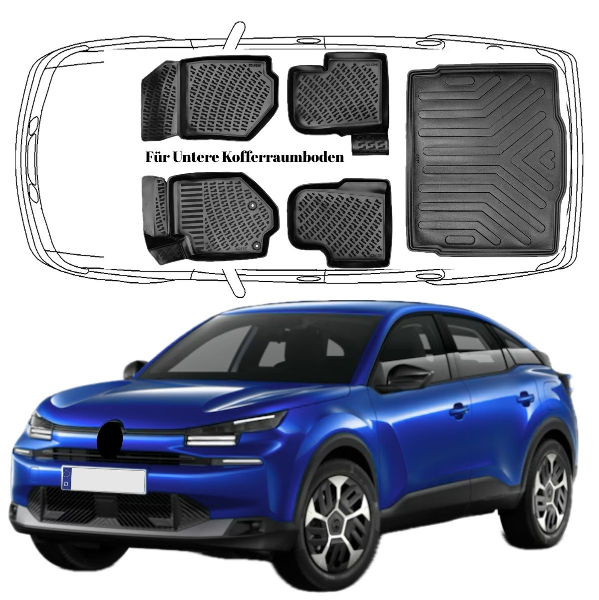 Maximaler Schutz trifft auf perfekte Passform: Die passgenauen Trimak Gummimatten wurden mithilfe modernster 3D-Laserscantechnologie speziell für den 3D Auto Fußmatten & Untere Kofferraumwanne Set Kompatibel mit CITROËN C4 3.Gen ab 2020 entwickelt.