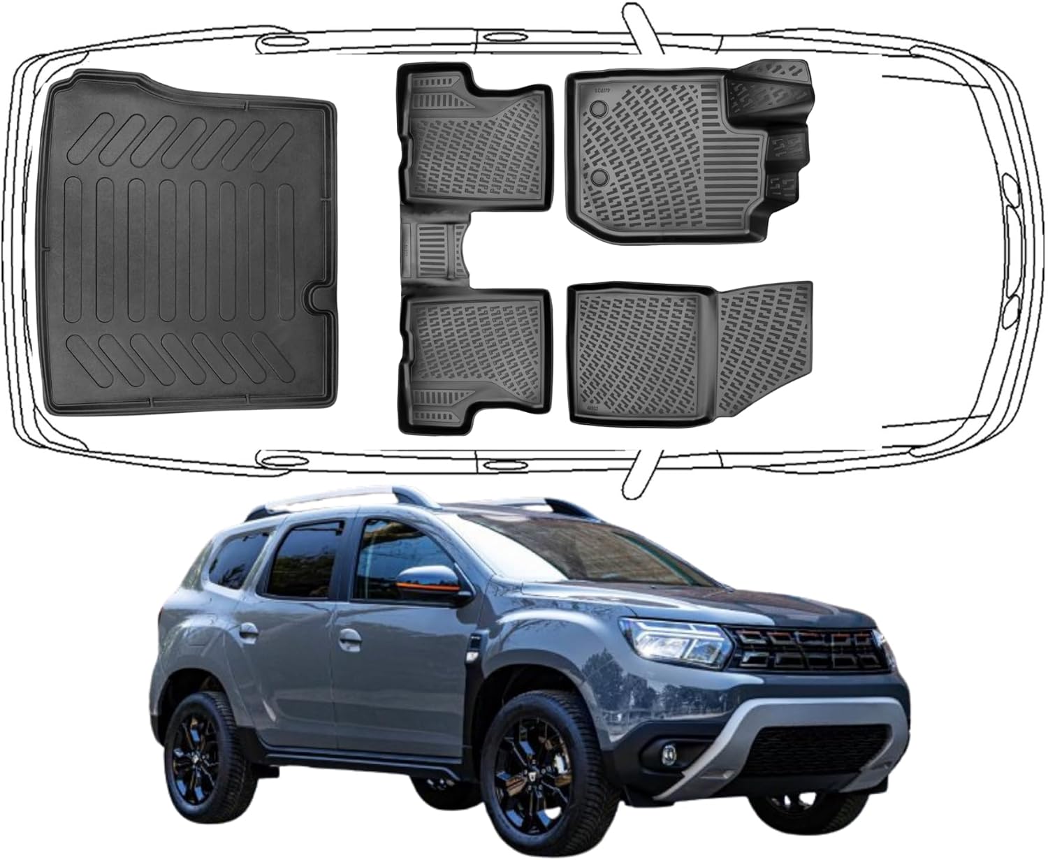 3D Fußmatten & Kofferraumwanne Auto Set Kompatibel mit Dacia Duster 4X2 2. Gen 2018 - 2022 *nicht für Prestige-Paket*
