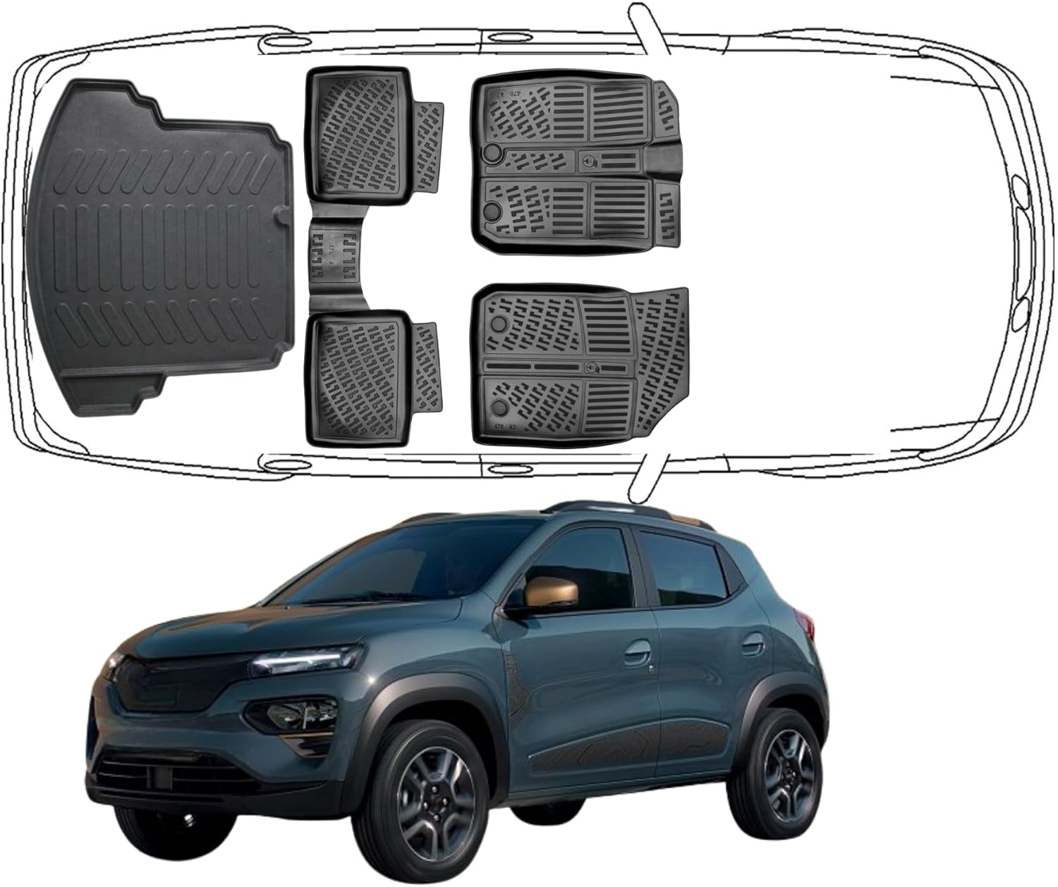 3D Fußmatten & Kofferraumwanne Auto Set Kompatibel mit Dacia Spring Elektric 2021 - 2024