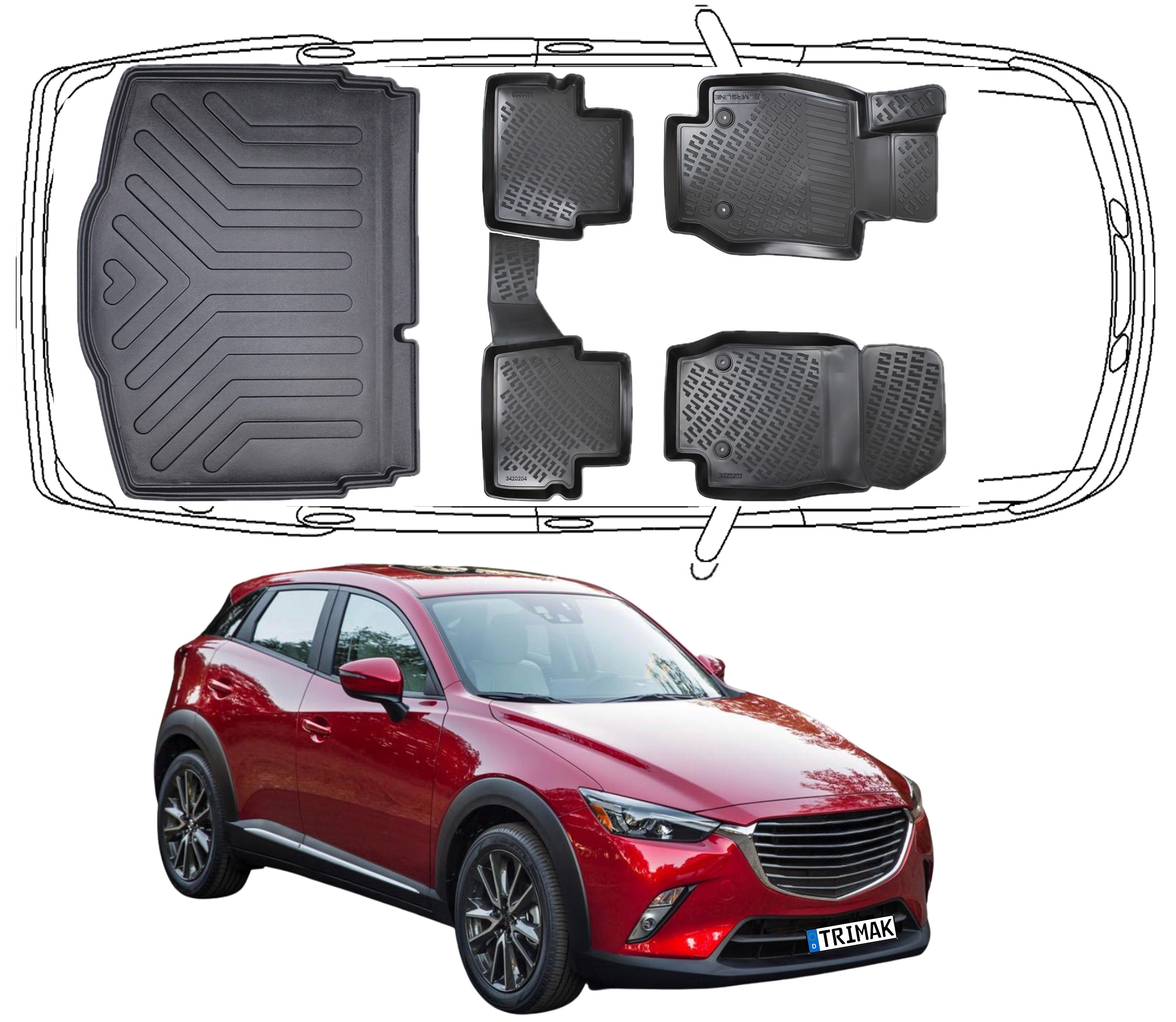 3D Fußmatten & Untere Kofferraumwanne Auto Set Kompatibel mit Mazda CX-3 2015 - 2023