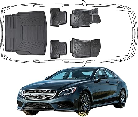 3D Fußmatten & Kofferraumwanne Auto Set Kompatibel mit Mercedes-Benz CLS C218 zwischen 2010-2017