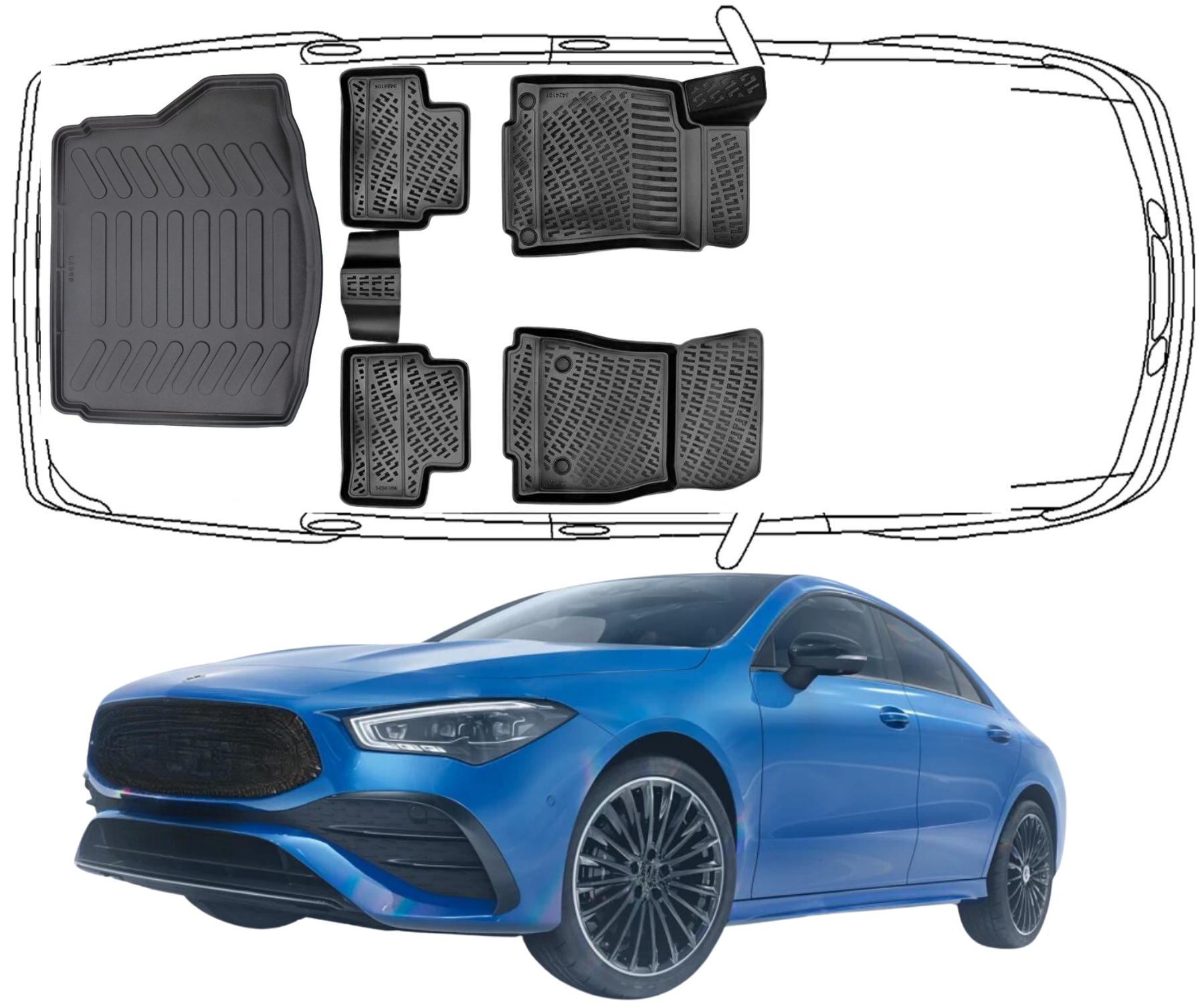 3D Fußmatten & Kofferraumwanne Auto Set Kompatibel mit Mercedes CLA 1.Gen 2013 - 2019 (C117)