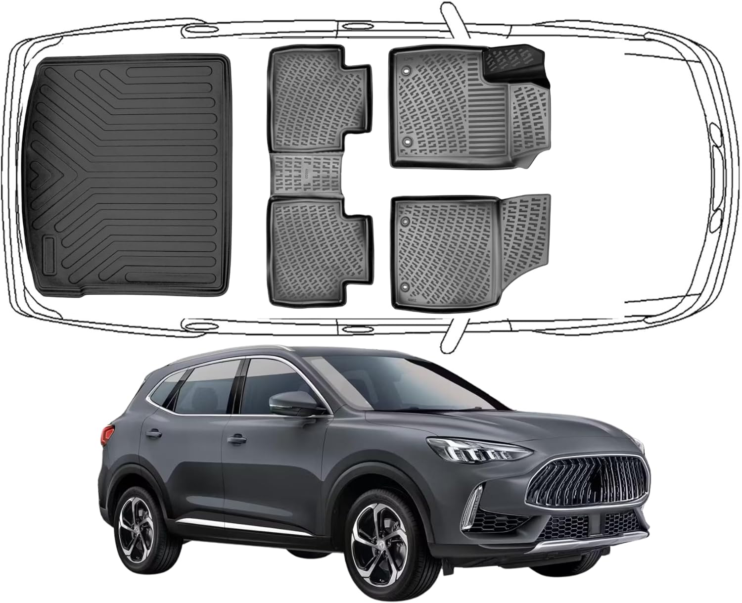 3D Fußmatten & Kofferraumwanne Auto Set Kompatibel mit MG HS Hybrid 1.Gen 2018-2024