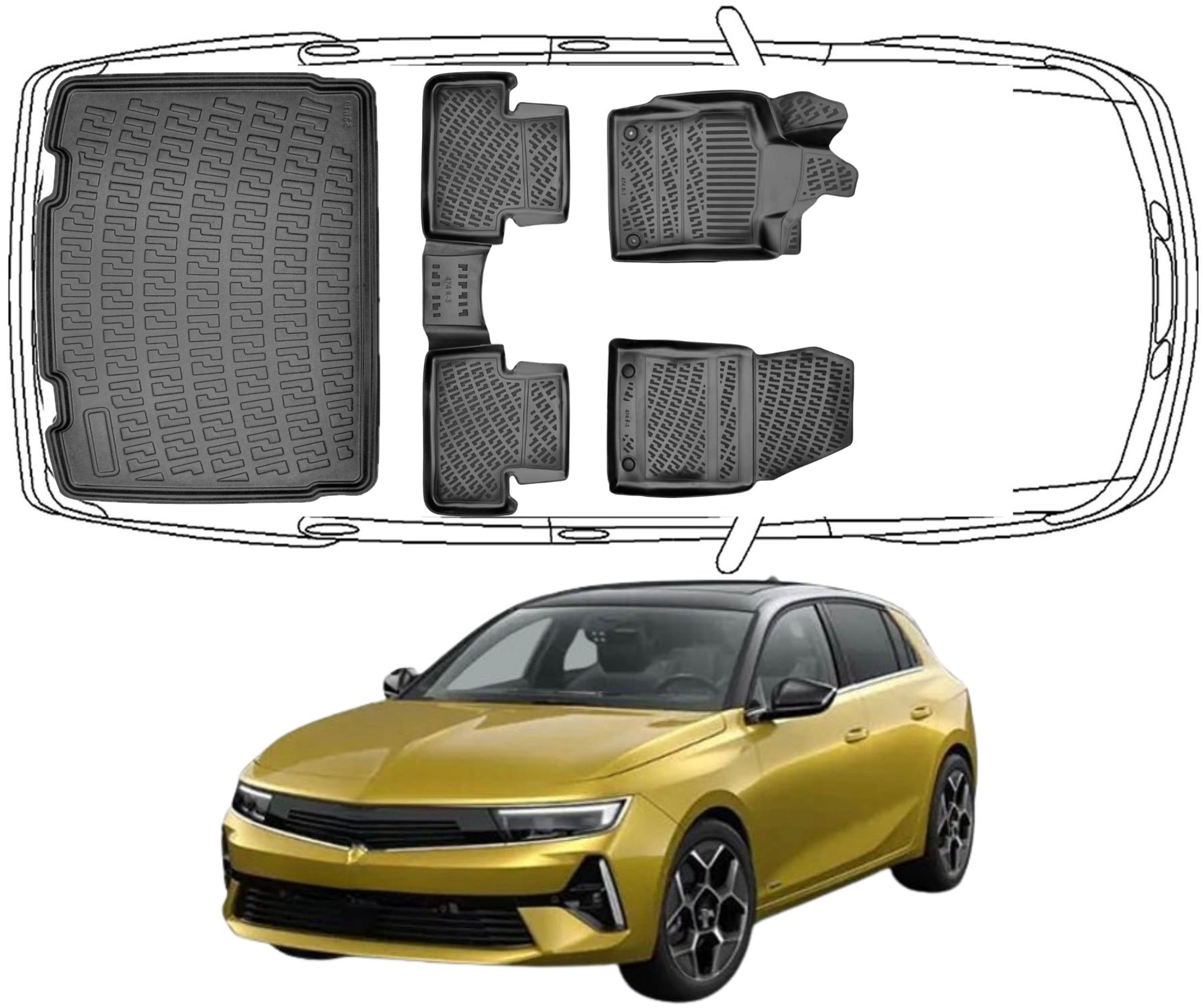 3D Fußmatten & Kofferraumwanne Auto Set Kompatibel mit Opel Astra L Electric