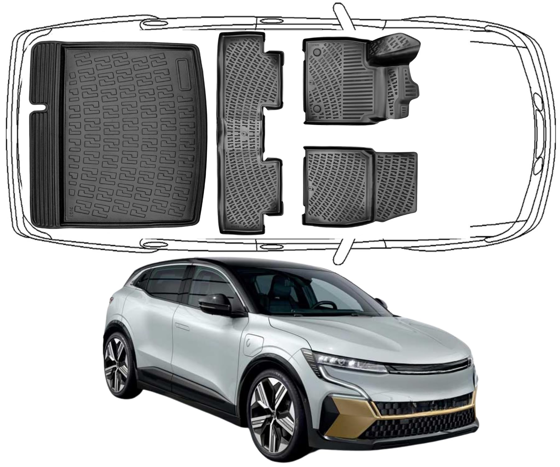 3D Fußmatten & Kofferraumwanne Auto Set Kompatibel mit Renault Megane E-Tech ab 2021