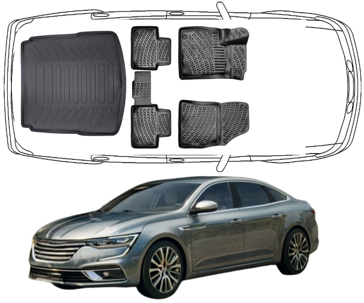 3D Fußmatten & Kofferraumwanne Auto Set Kompatibel mit Renault Talisman Sedan 2015–2022