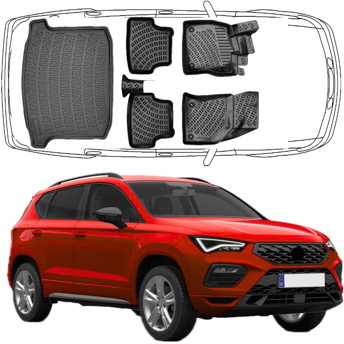 3D Fußmatten & *** Modelle ohne Reserverad *** Kofferraumwanne Auto Set Kompatibel mit Seat Ateca 2016 - 2024