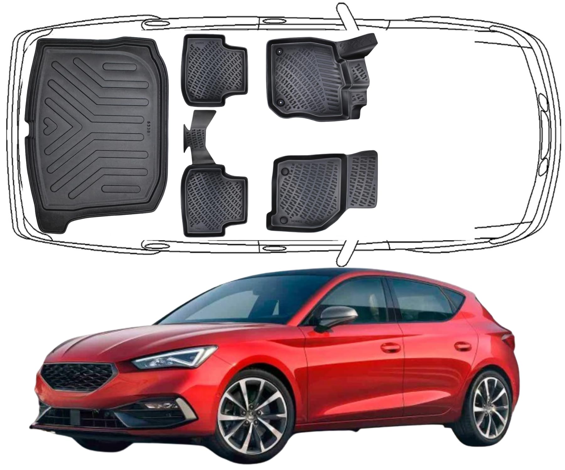 3D Fußmatten & Kofferraumwanne Auto Set Kompatibel mit Seat / Cupra Leon 4 HB Benzin & Diesel & Plug-in-Hybrid 2020 - 2026