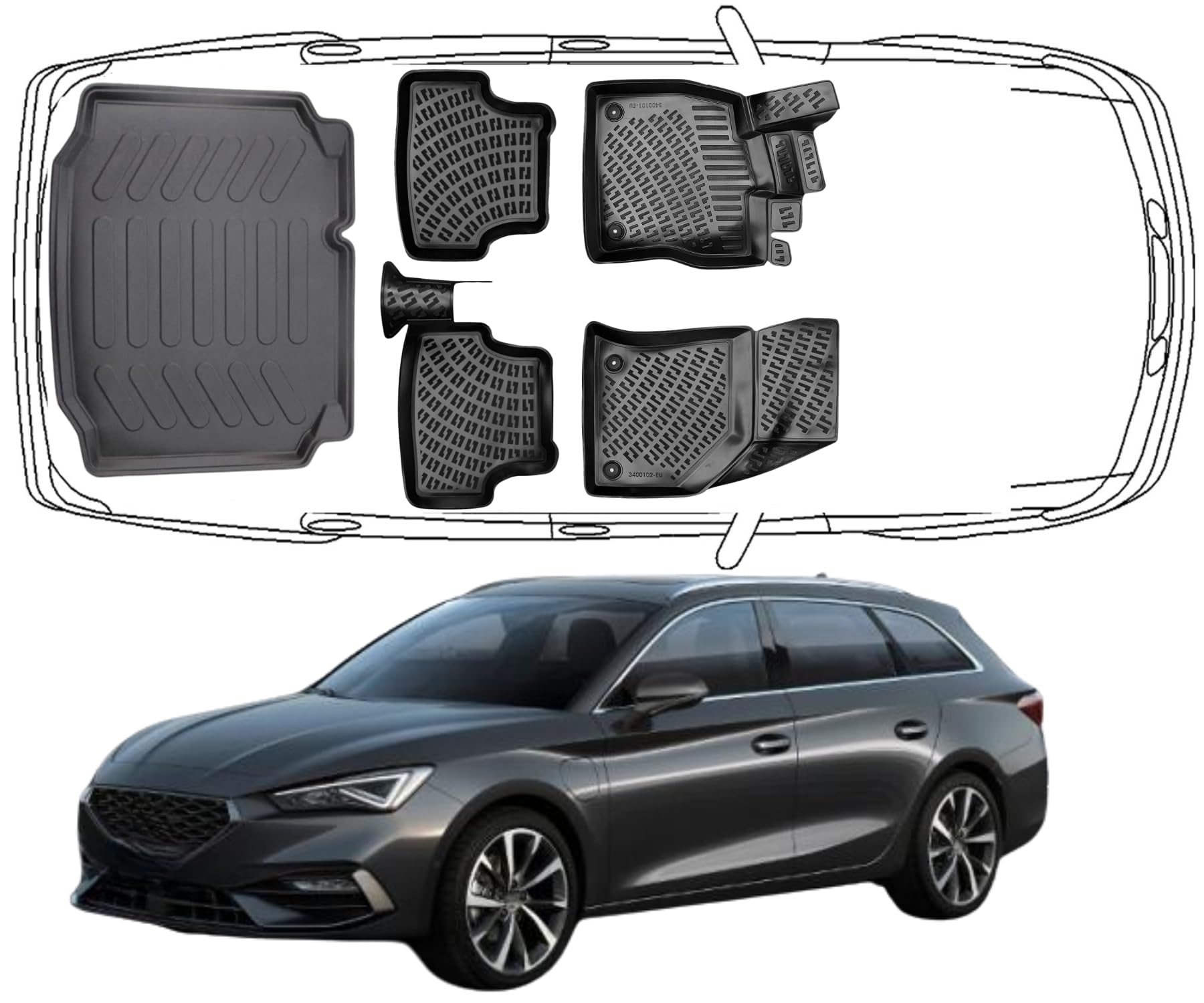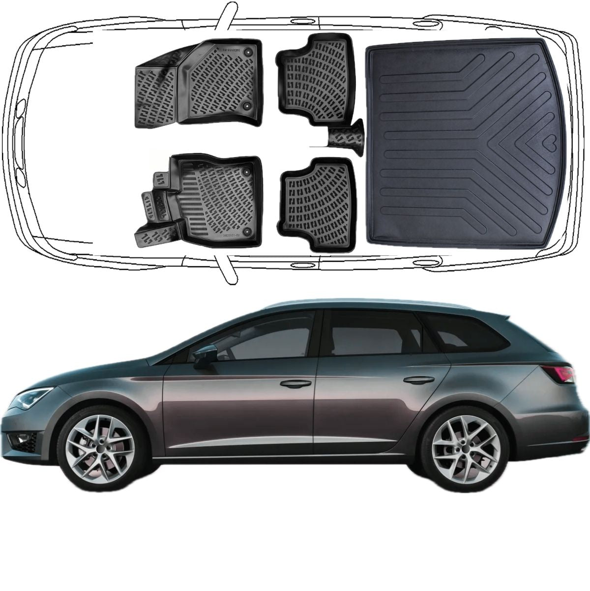 3D Fußmatten & Kofferraumwanne Auto Set Kompatibel mit Seat Leon III Kombi ST 2013–2020