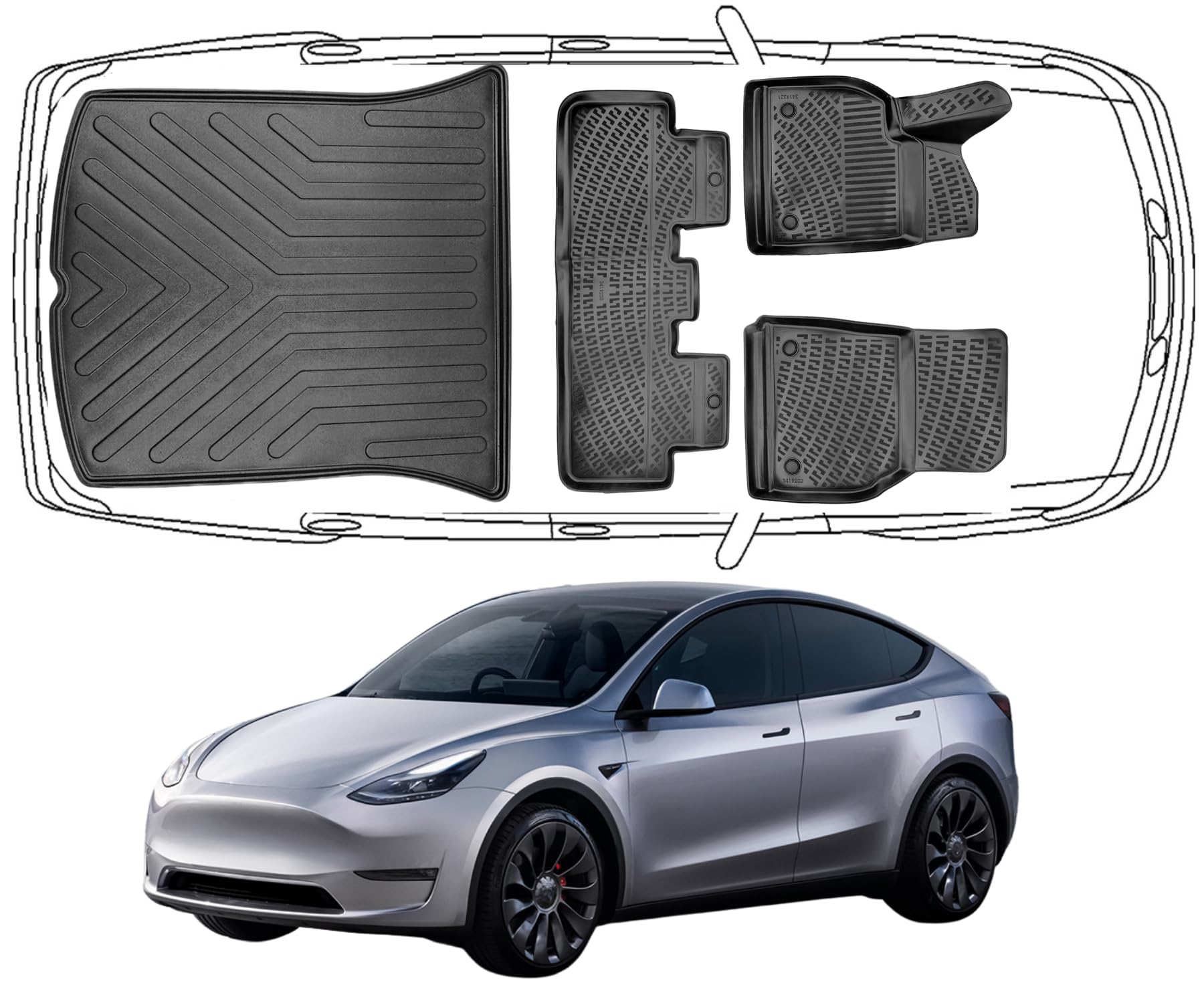 3D Fußmatten & Kofferraumwanne Auto Set Kompatibel mit Tesla Model Y 1.Gen 2020-2024