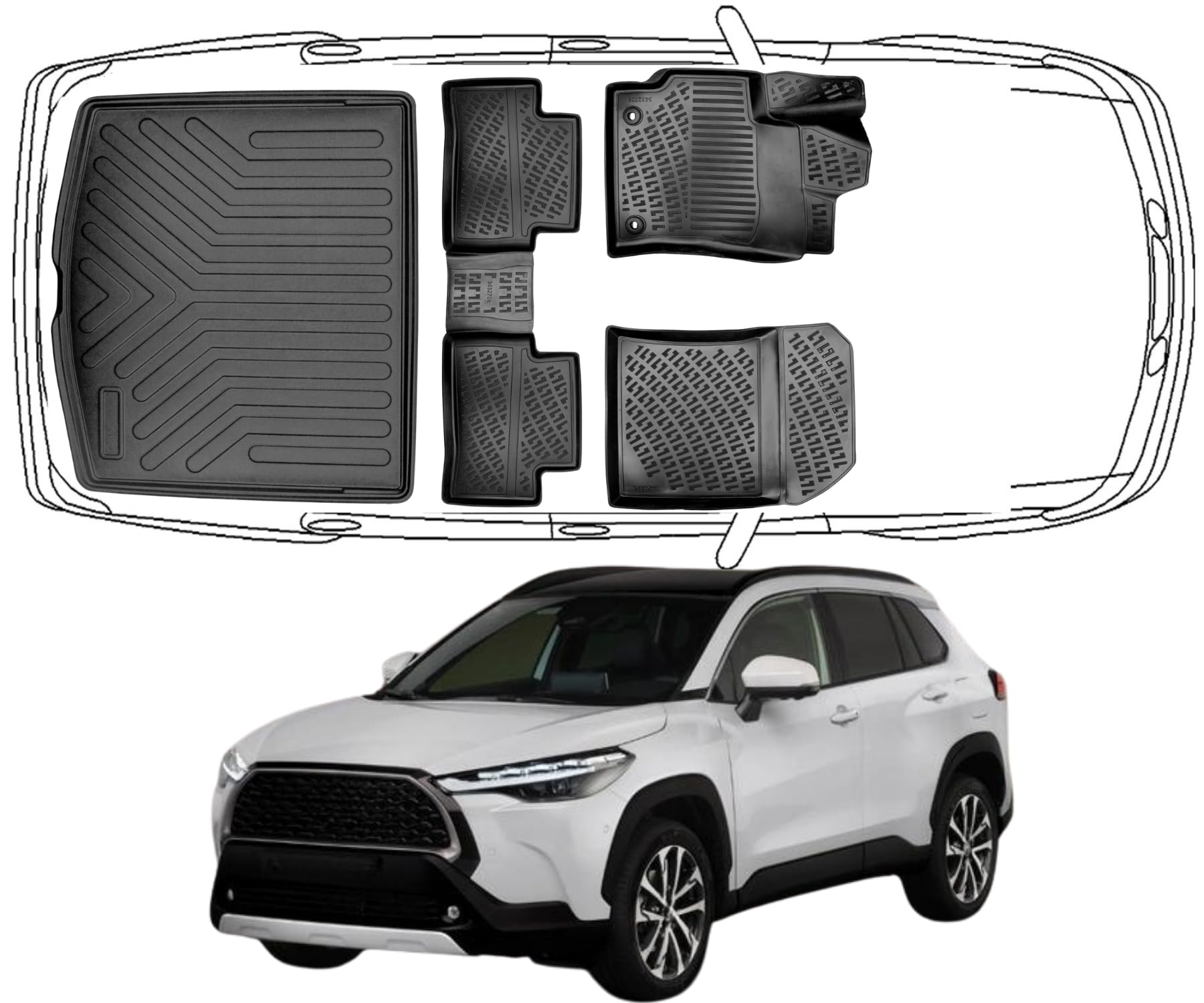 3D Fußmatten & Kofferraumwanne Auto Set Kompatibel mit Toyota Corolla Cross 2020 - 2024