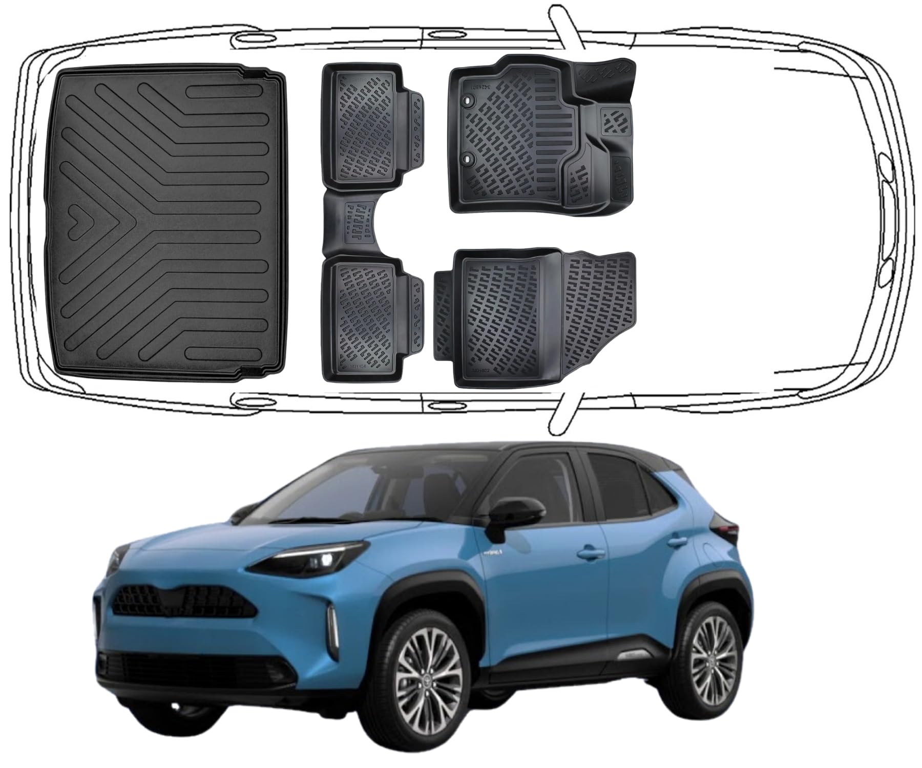 3D Fußmatten & Obere Kofferraumwanne Auto Set Kompatibel mit Toyota yaris Cross