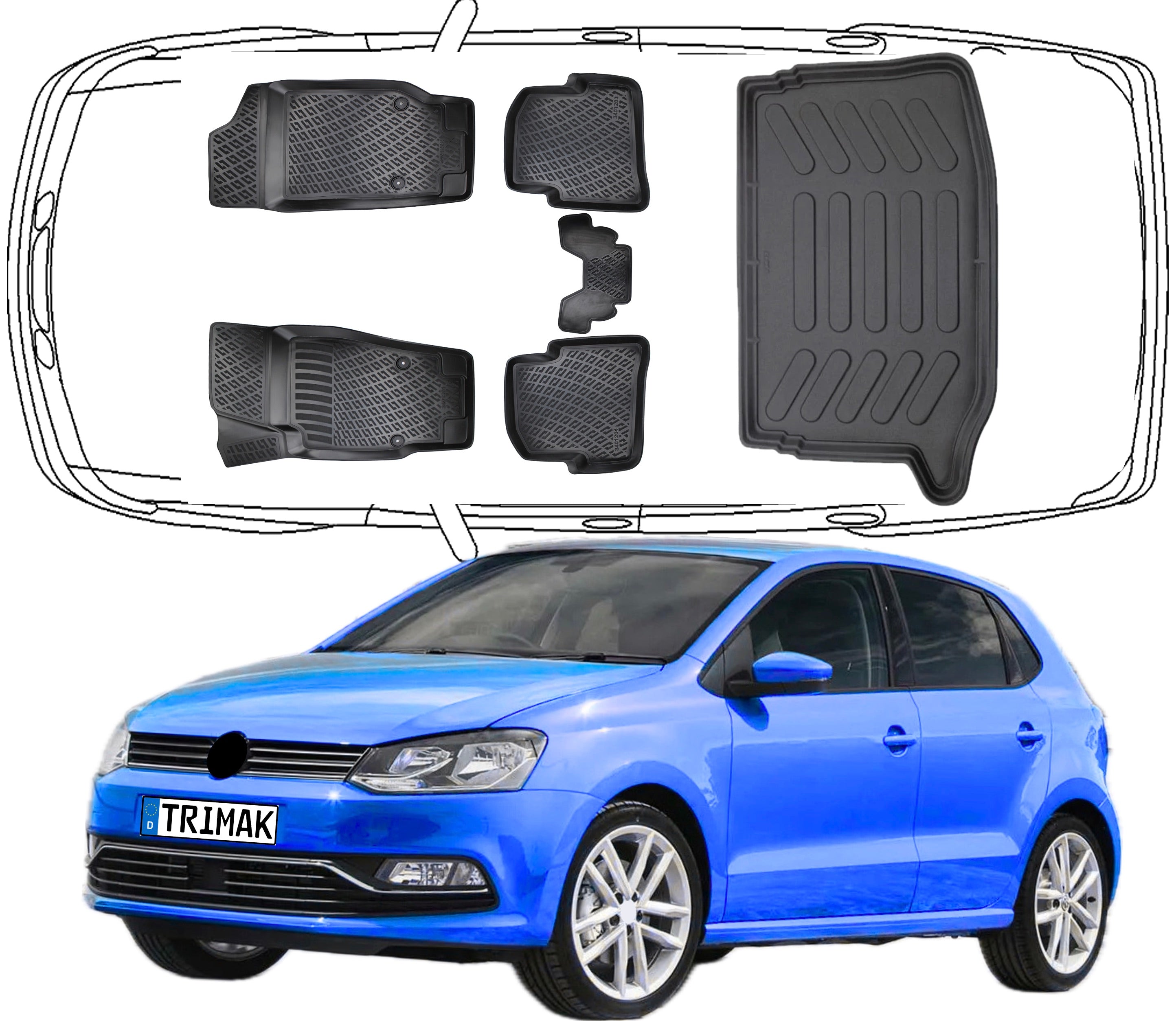 3D Fußmatten & * Obere * Kofferraumwanne Auto Set Kompatibel mit VW POLO 5 Typ 6R & 6C 2009 - 2017