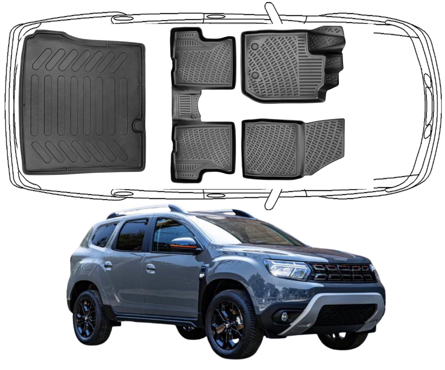 3D Fußmatten & Kofferraumwanne Auto Set Kompatibel mit DACIA DUSTER 4x2 für Prestige-Paket 2.Gen 2018 - 2022