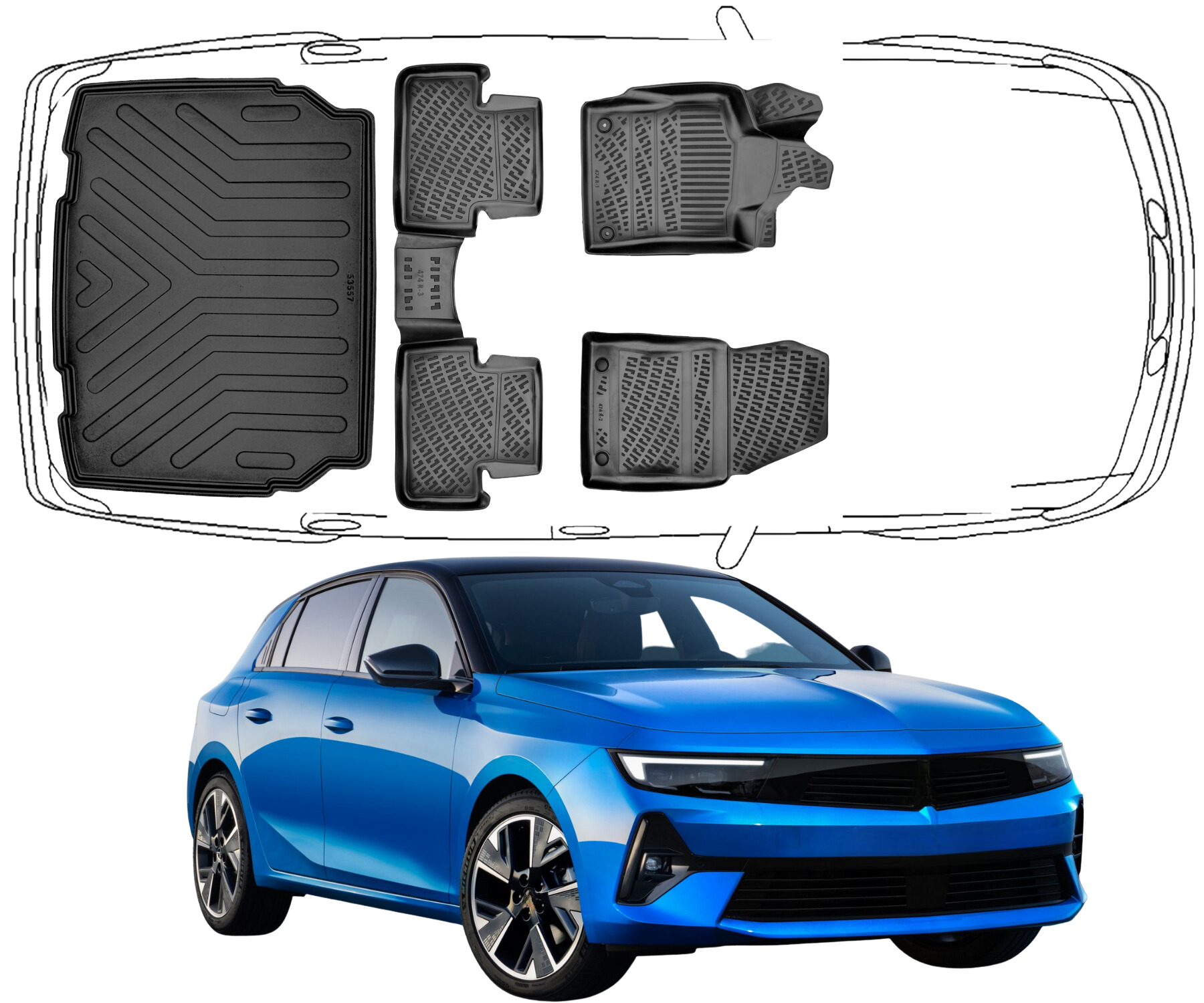 3D Fußmatten & Untere Kofferraumwanne Auto Set Kompatibel mit Opel Astra L