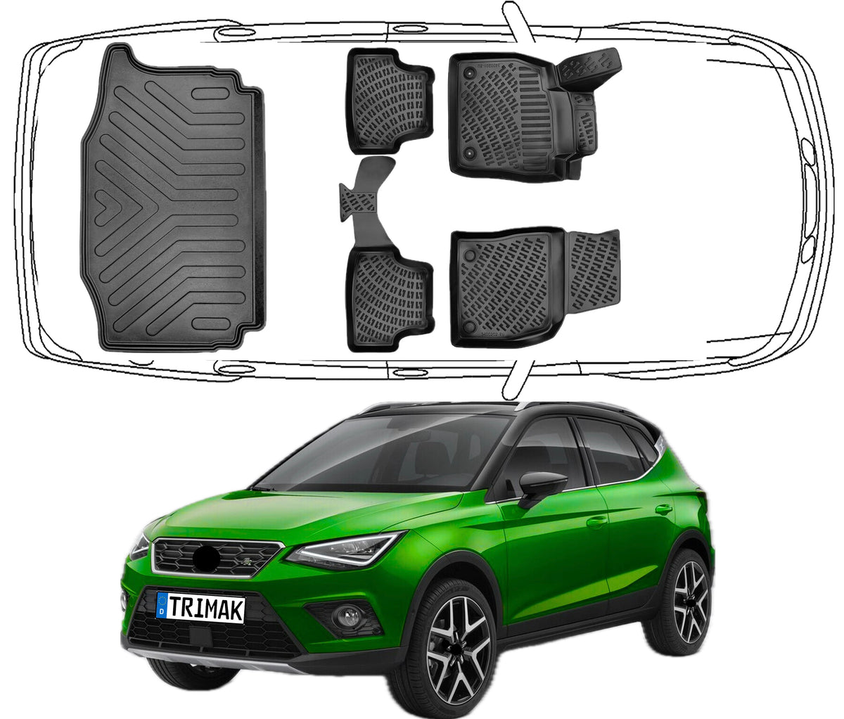 3D Fußmatten & Untere Kofferraumwanne Auto Set Kompatibel mit Seat ARONA 2017 - 2024
