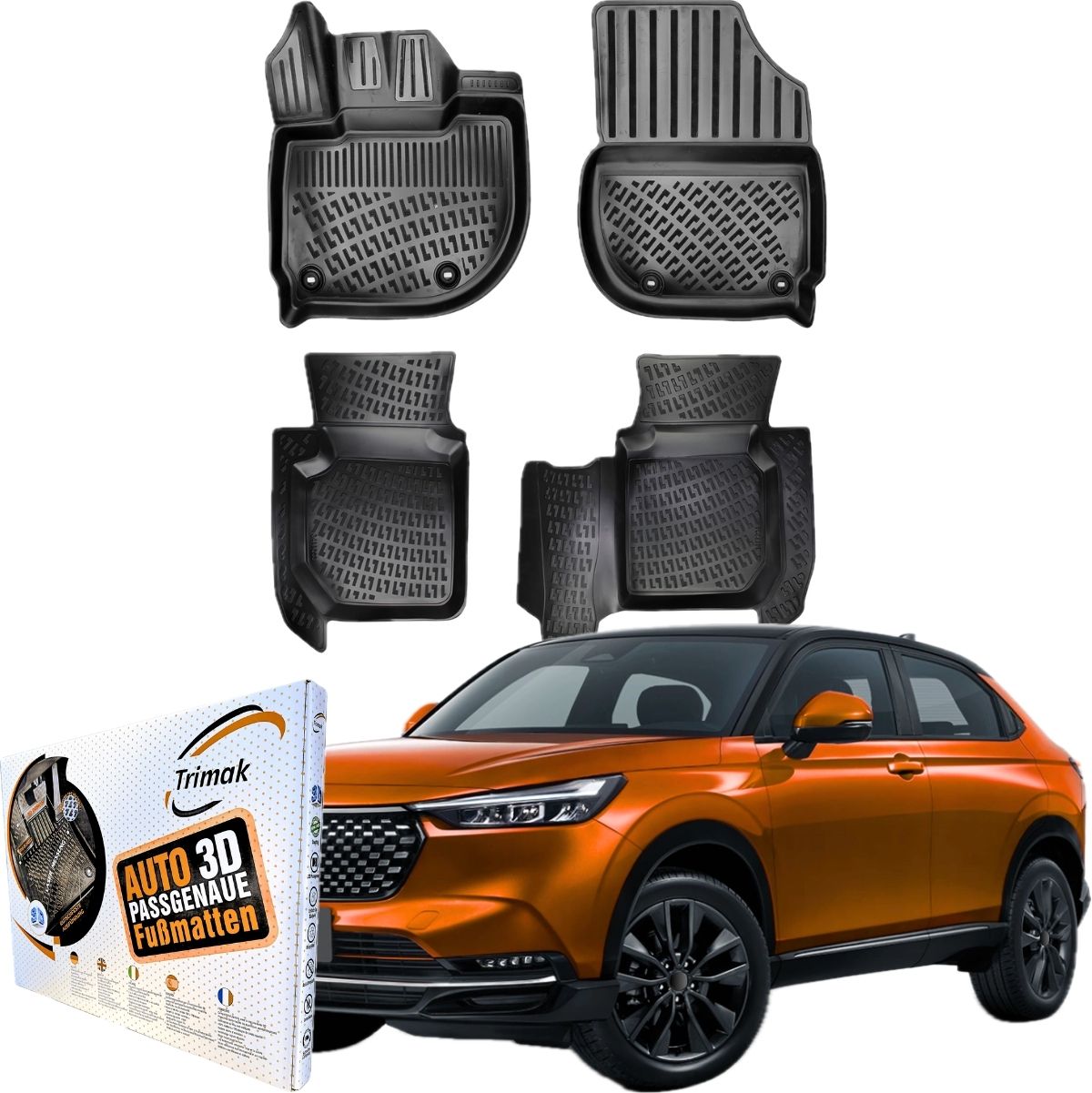 Maximaler Schutz trifft auf perfekte Passform: Die passgenauen Trimak Gummimatten wurden mithilfe modernster 3D-Laserscantechnologie speziell für den Trimak Honda HR-V 3.Gen ab 2022 Auto AllWetter Gummimatten entwickelt.