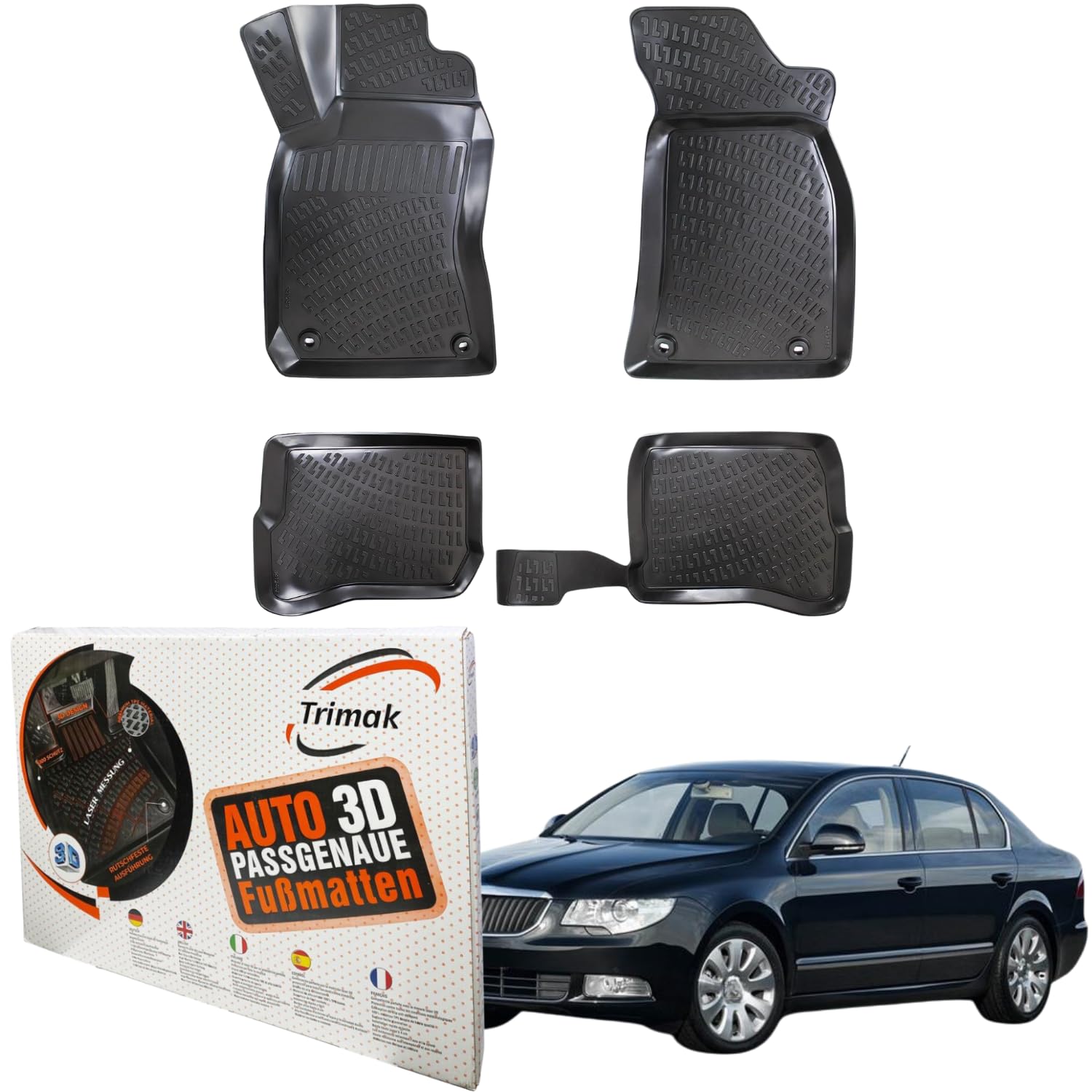 Maximaler Schutz trifft auf perfekte Passform: Die passgenauen Trimak Gummimatten wurden mithilfe modernster 3D-Laserscantechnologie speziell für den Trimak Škoda Superb I. 2001 bis 2008 Auto AllWetterGummimatten entwickelt.