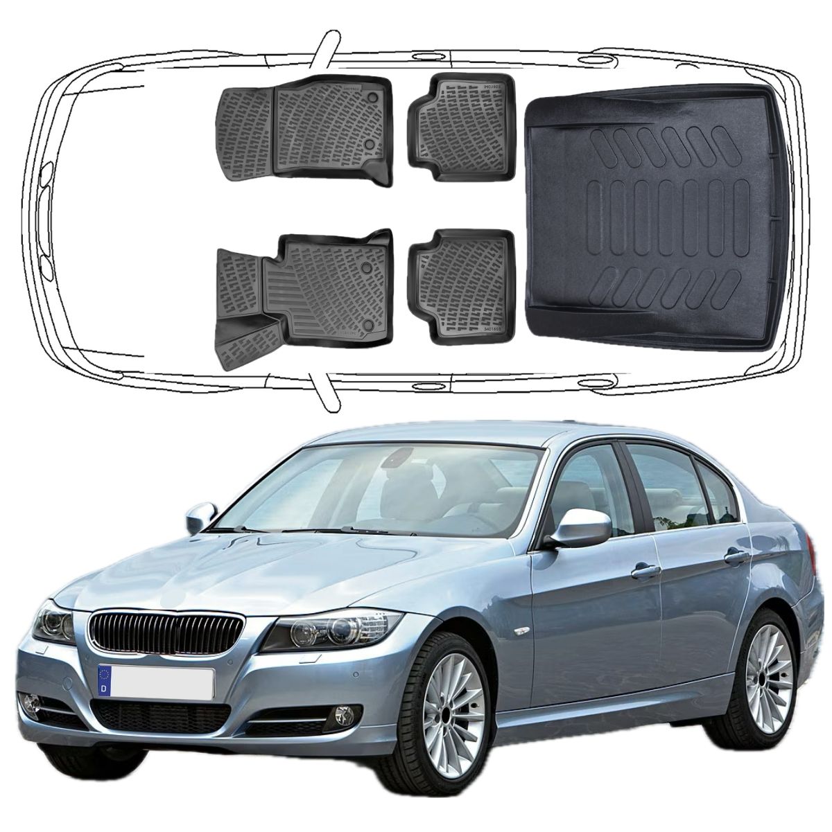 Maximaler Schutz trifft auf perfekte Passform: Die passgenauen Trimak Gummimatten wurden mithilfe modernster 3D-Laserscantechnologie speziell für den 3D Auto Fußmatten & Kofferraumwanne Set Kompatibel mit BMW 3'er E90 2005-2011 Sedan Limousine entwickelt.