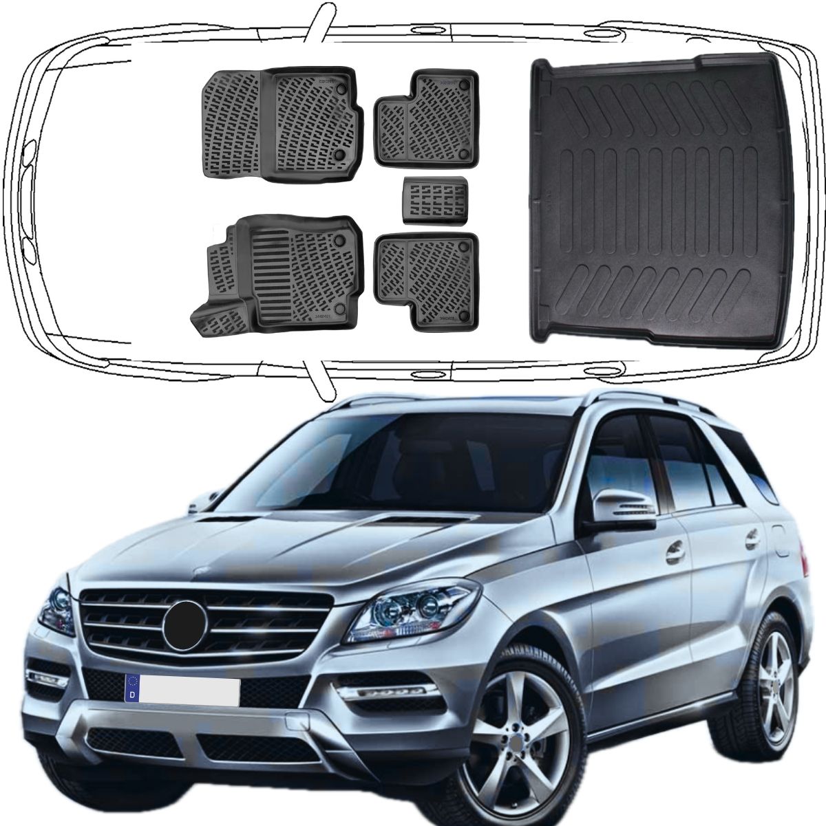 3D Auto Fußmatten & Kofferraumwanne Set Kompatibel mit Mercedes ML W166 2011-2018