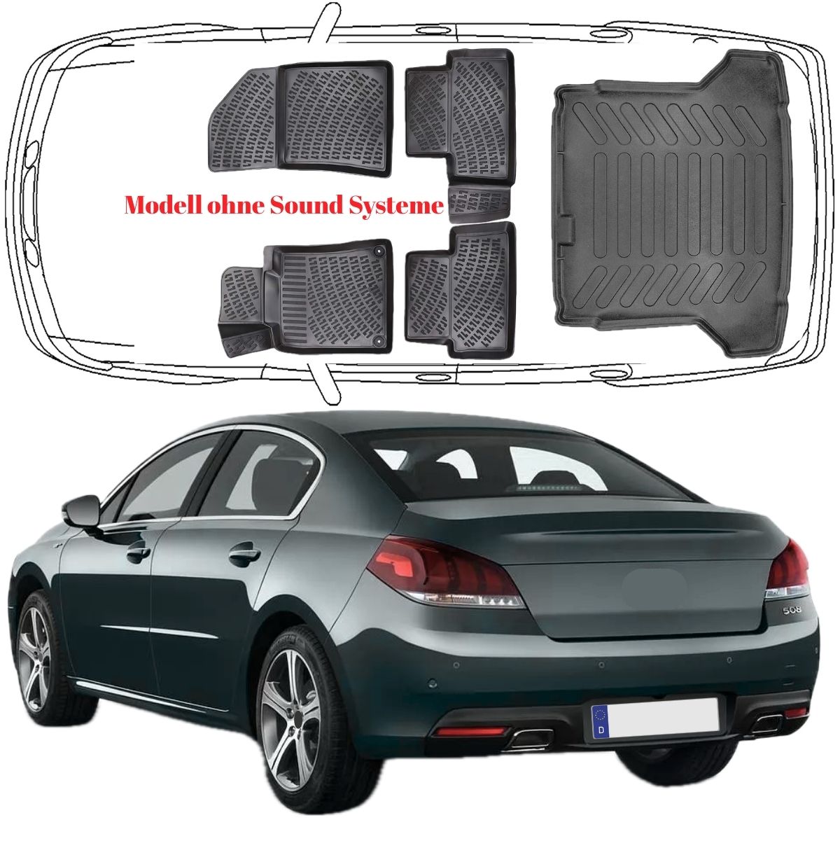 3D Auto Fußmatten & Kofferraumwanne Set Kompatibel mit Peugeot 5008 1.Gen 2010-2018 Modell ohne Sound Systeme