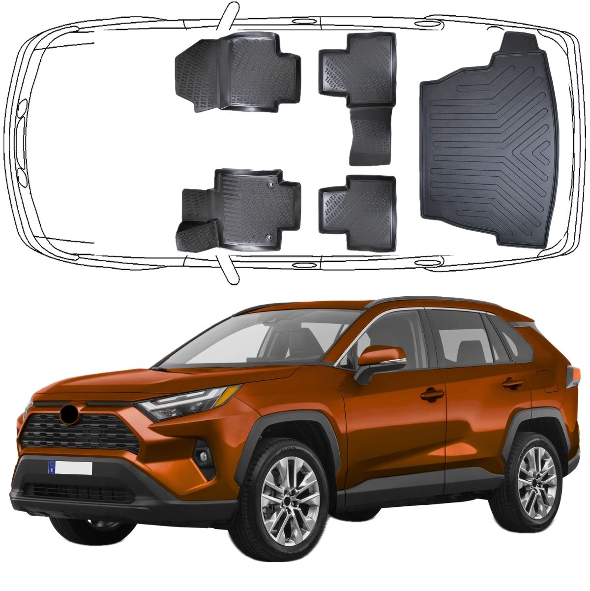 3D Auto Fußmatten & Kofferraumwanne Set Kompatibel mit Toyota RAV4 5.Gen ab 2018