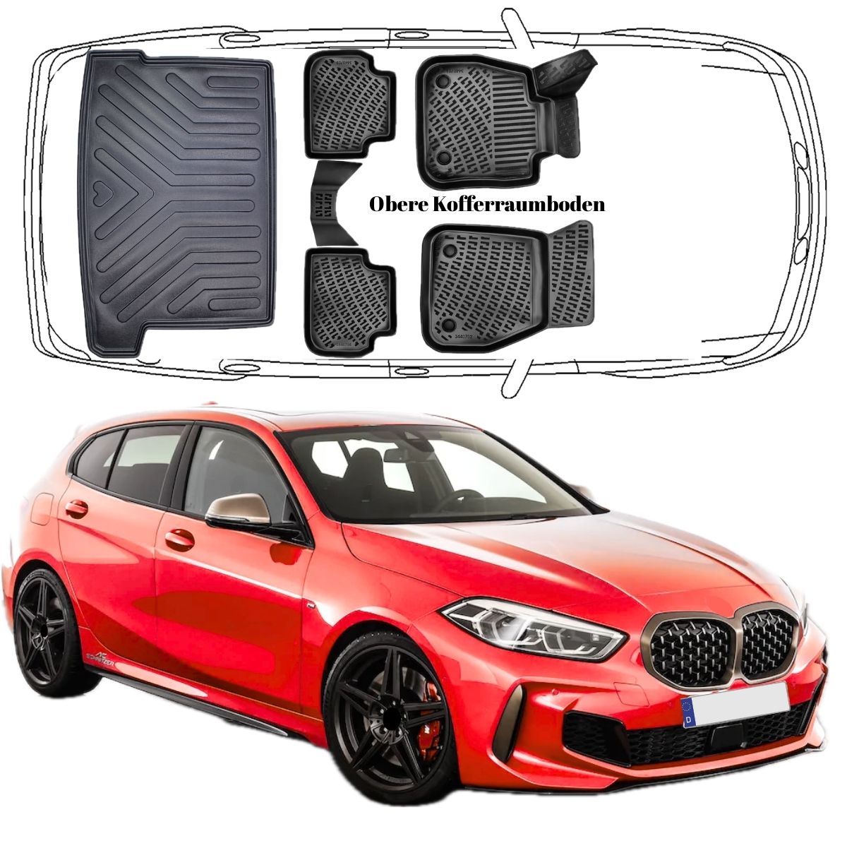 Maximaler Schutz trifft auf perfekte Passform: Die passgenauen Trimak Gummimatten wurden mithilfe modernster 3D-Laserscantechnologie speziell für den 3D Auto Fußmatten & Untere Kofferraumwanne Set Kompatibel mit BMW 1'er F40 2019-2024 entwickelt.