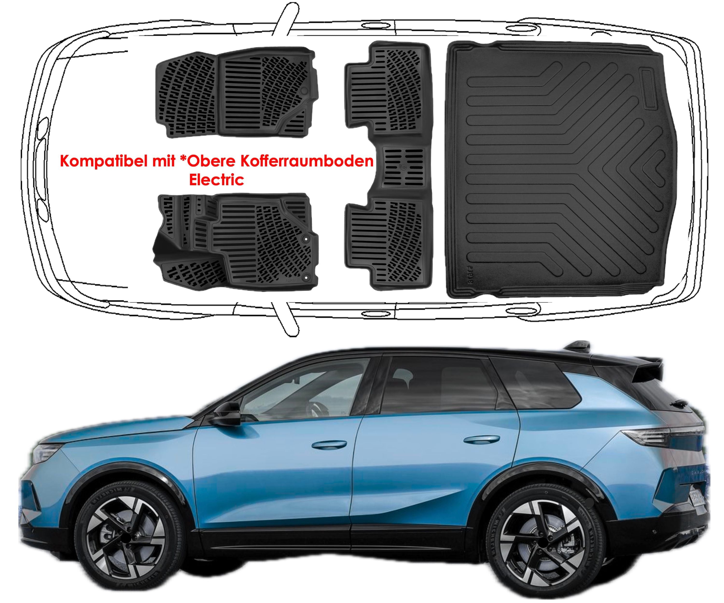 3D Auto Fußmatten & Obere Kofferraumwanne Set Kompatibel mit Opel Grandland 2.Gen Electric ab 2024