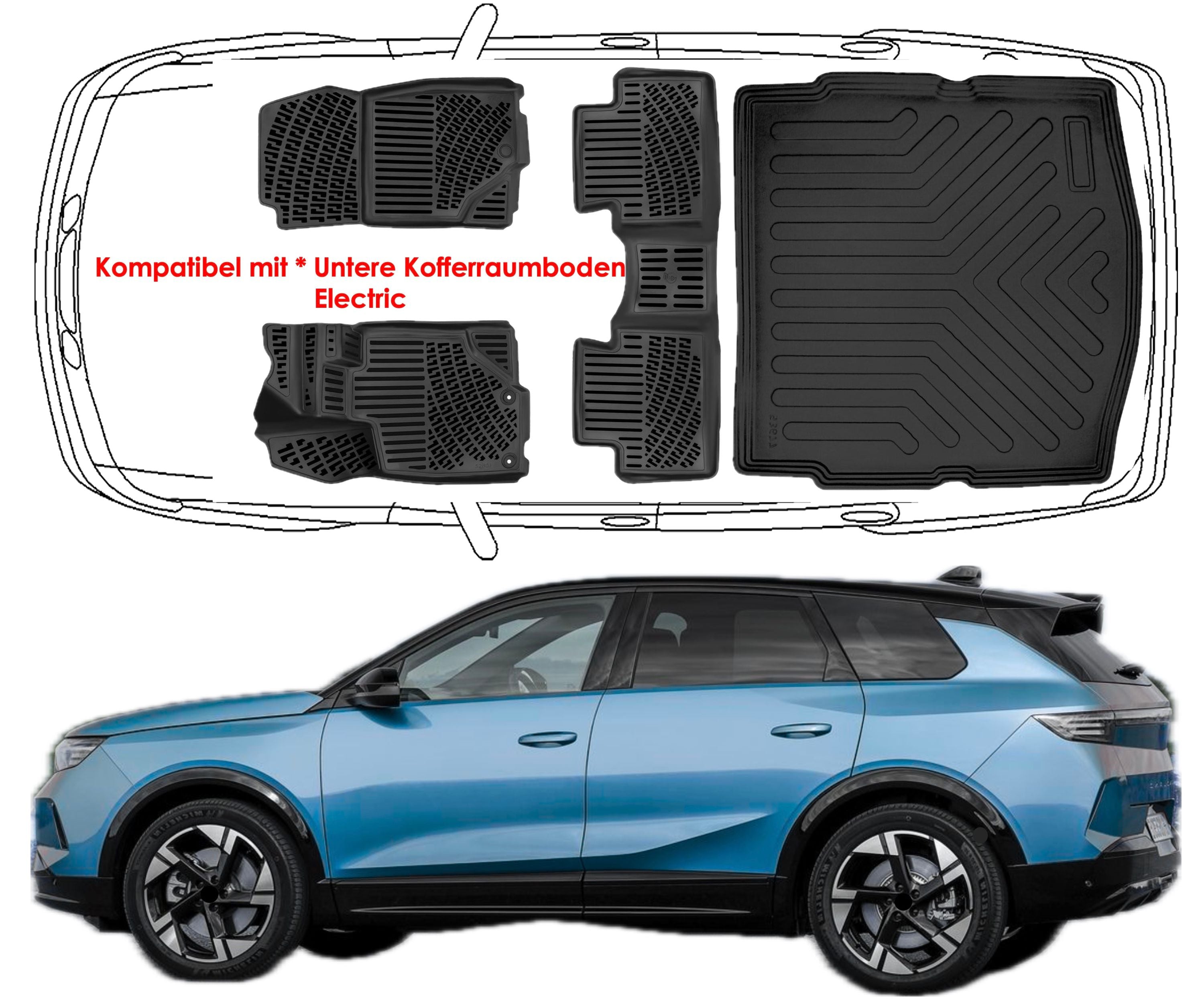 3D Auto Fußmatten & Untere Kofferraumwanne Set Kompatibel mit Opel Grandland 2.Gen Electric ab 2024