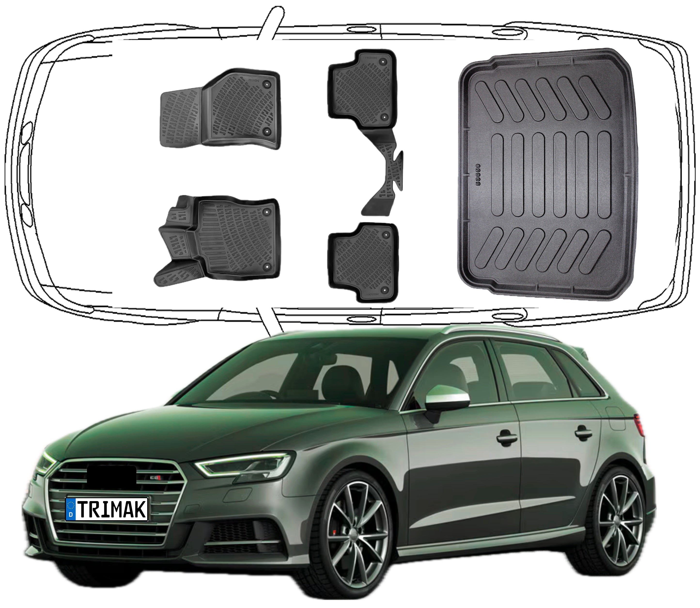 3D Fußmatten & Kofferraumwanne Auto Set Kompatibel mit Audi A3 HB 8V 2013 - 2020