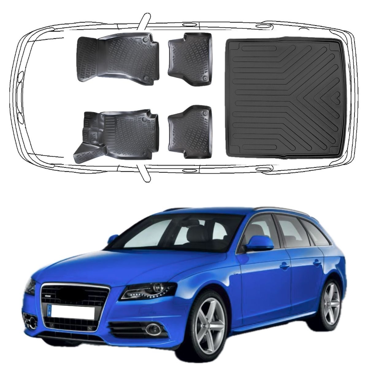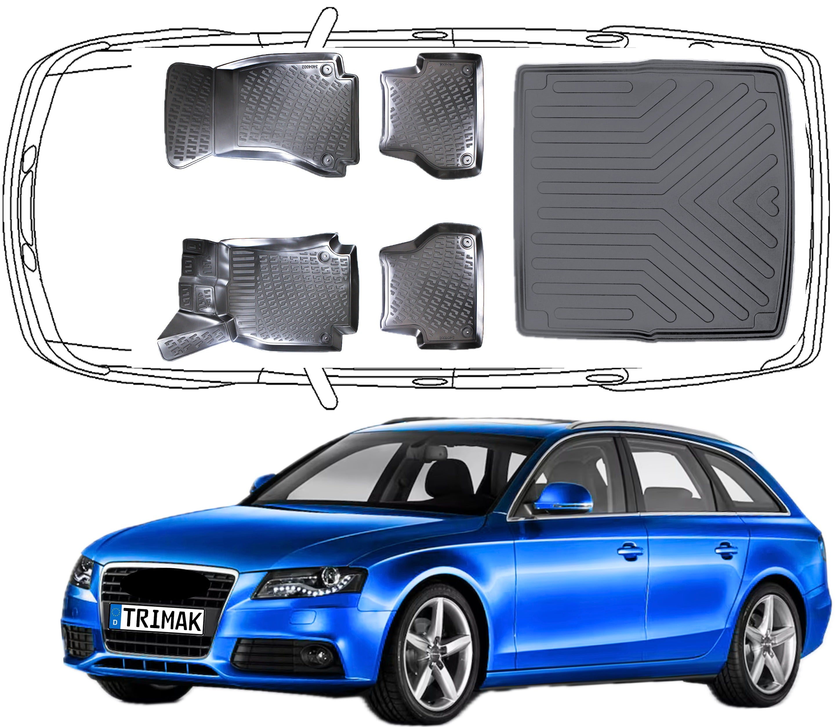 3D Fußmatten & Kofferraumwanne Auto Set Kompatibel mit Audi A4 Kombi 2007 - 2015 B8