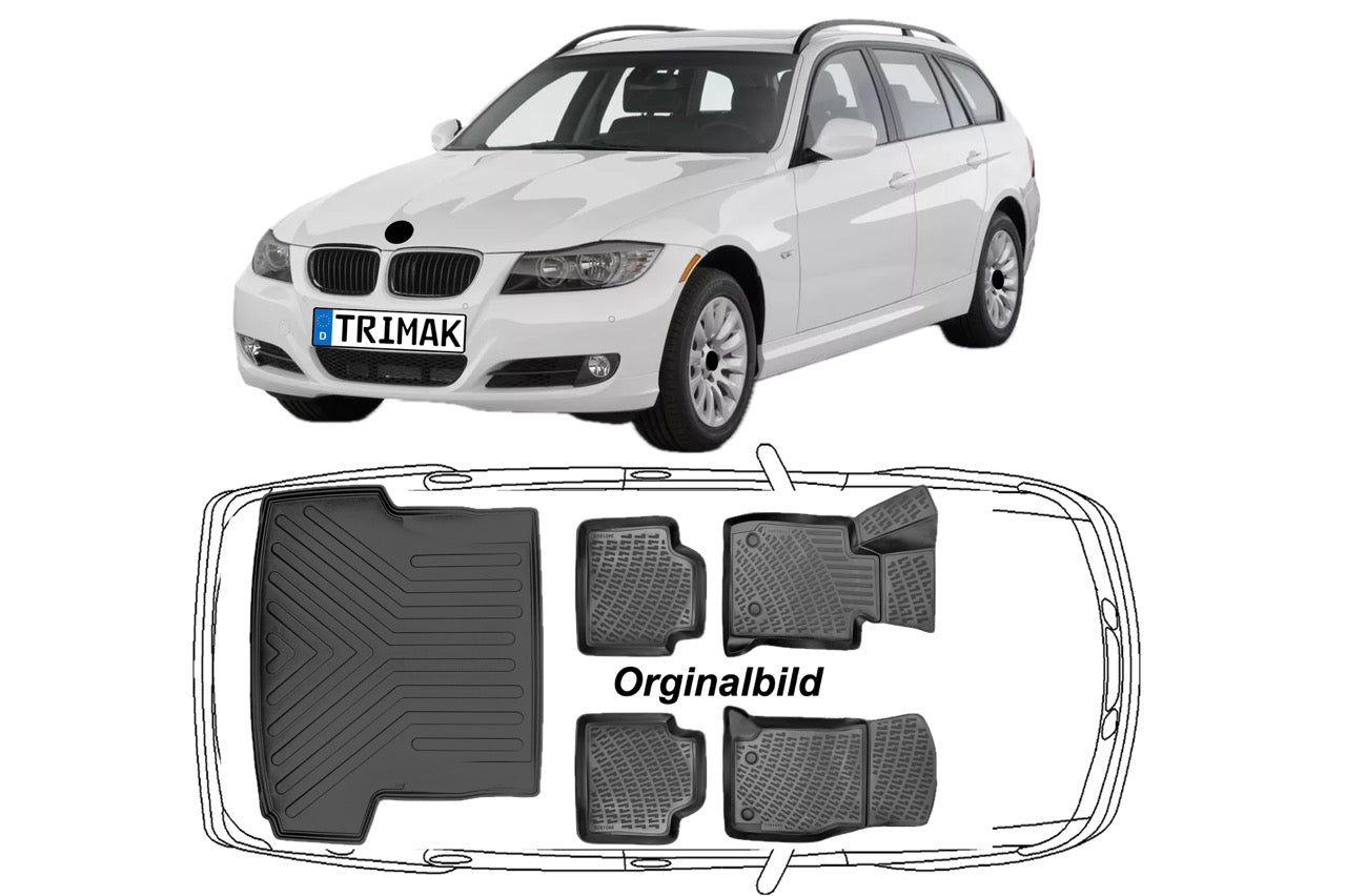 3D Fußmatten & Kofferraumwanne Auto Set Kompatibel mit BMW 3ér F31 F30 Touring Kombi 2012 - 2019