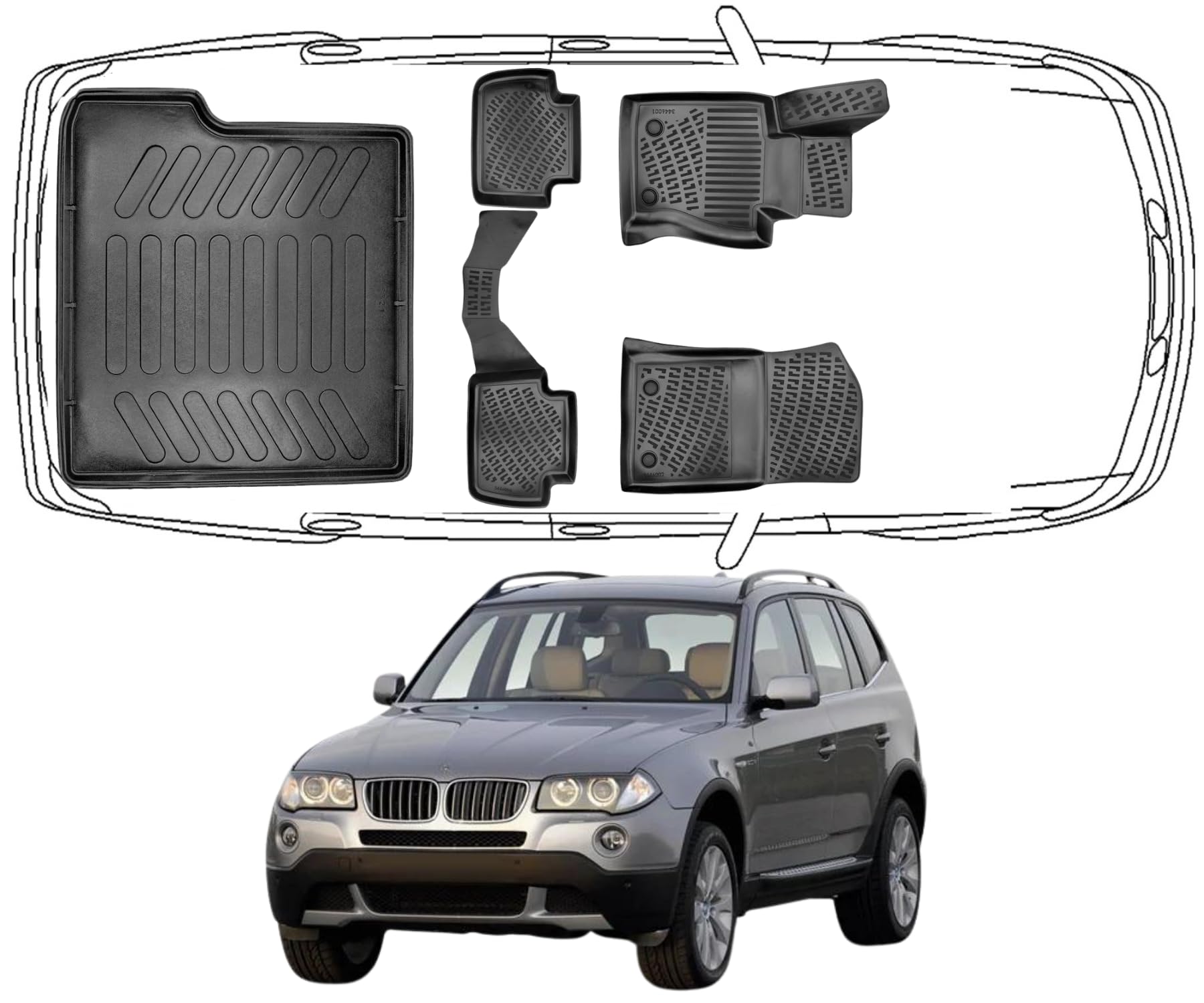 3D Fußmatten & Kofferraumwanne Auto Set Kompatibel mit BMW X3 E83 2003–2010