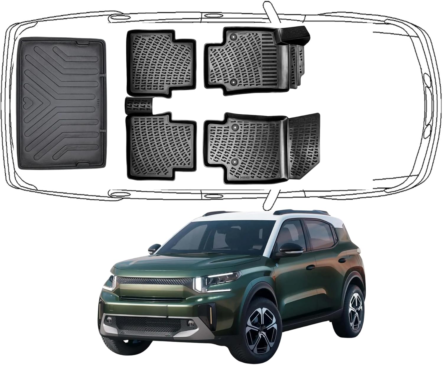 3D Fußmatten & Kofferraumwanne Auto Set Kompatibel mit Citroën C3 Aircross 2017 - 2024