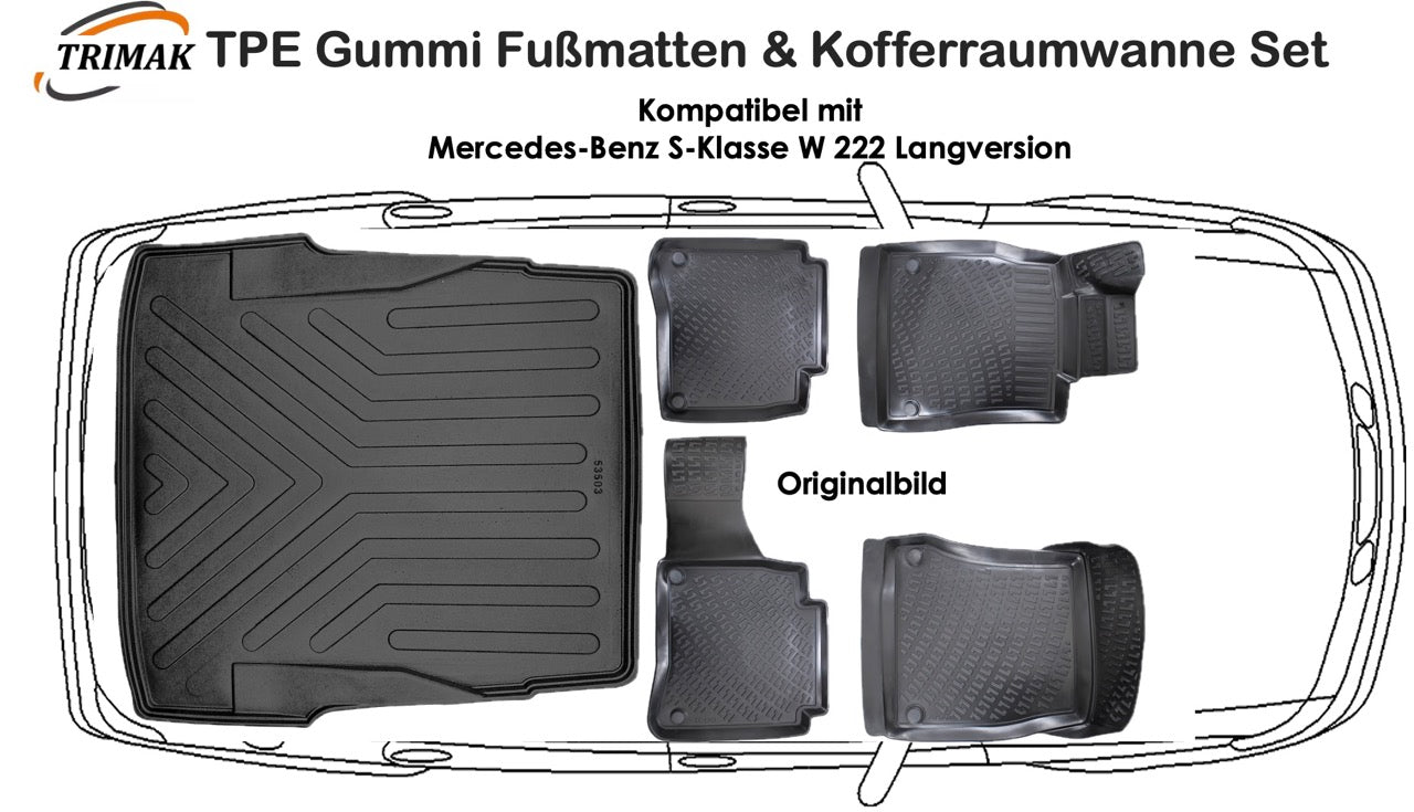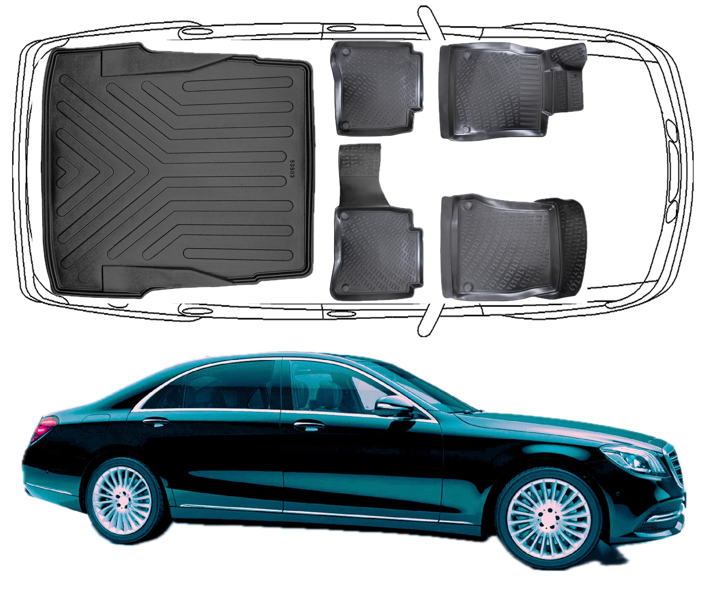 3D Fußmatten & Kofferraumwanne Auto Set Kompatibel mit Mercedes-Benz S-Klasse W 222 Kurz