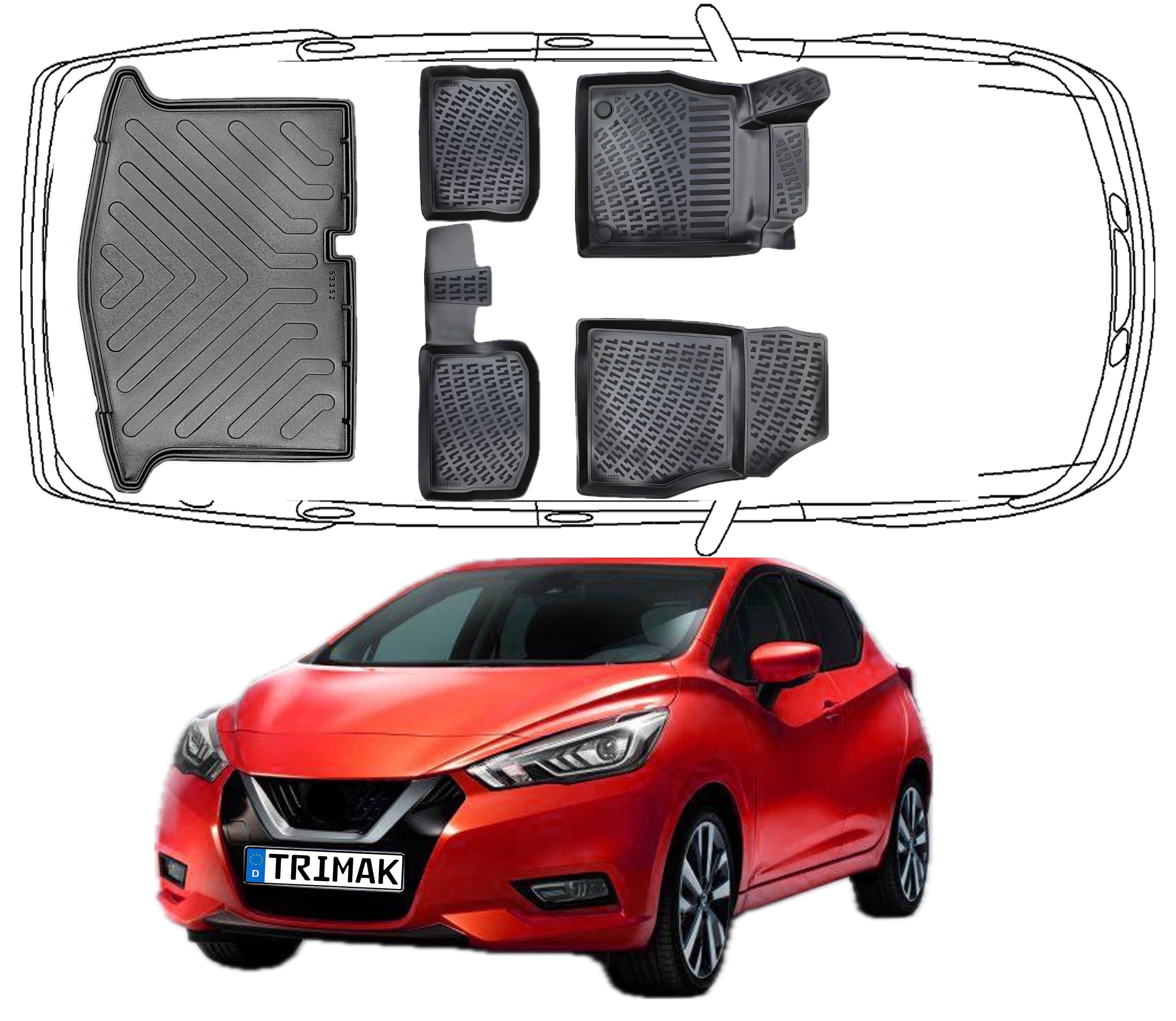 3D Fußmatten & Kofferraumwanne Auto Set Kompatibel mit Nissan Micra K14 2017 - 2022