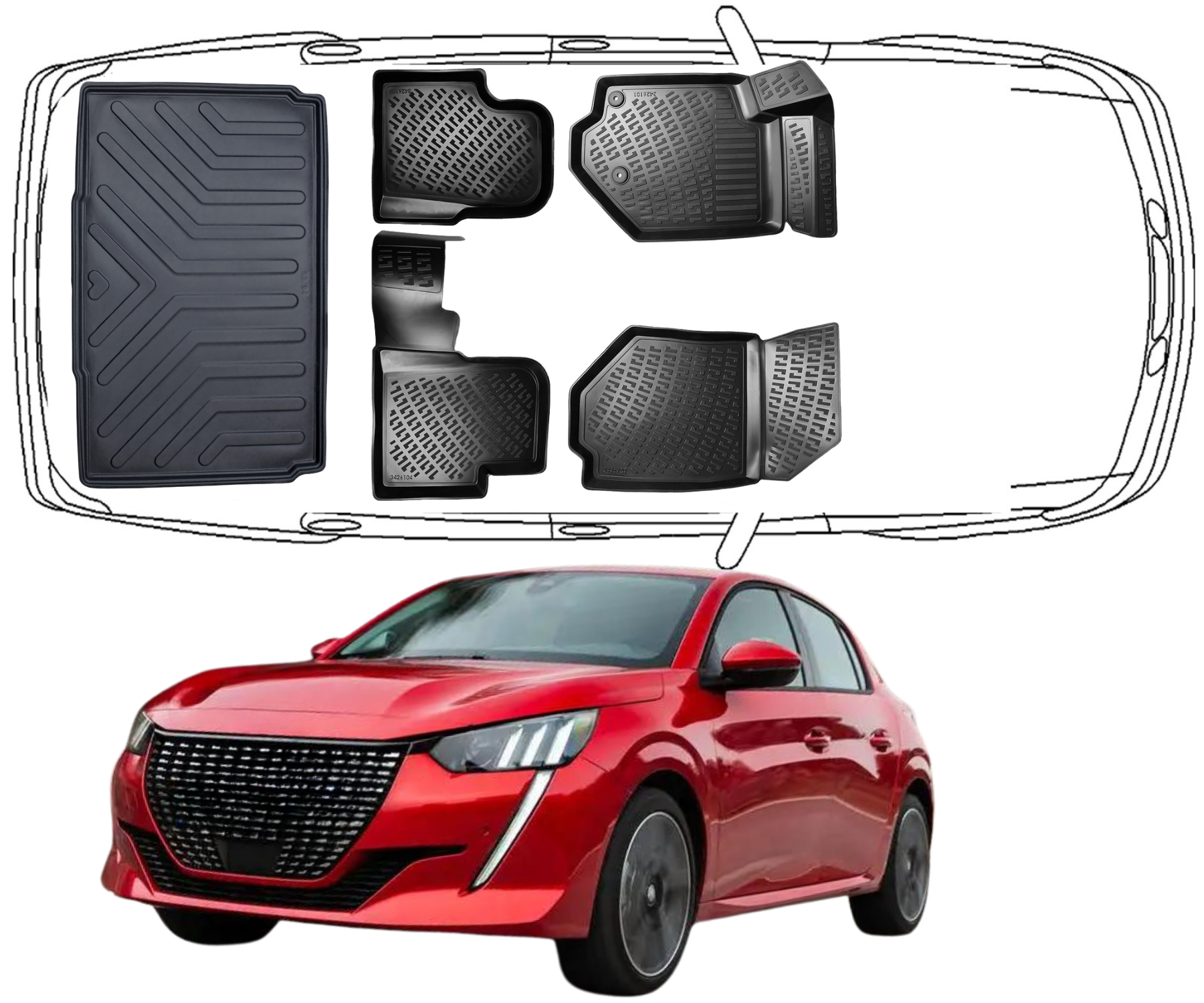 3D Fußmatten & Kofferraumwanne Auto Set Kompatibel mit Peugeot 208 2.Gen 2019 -2024