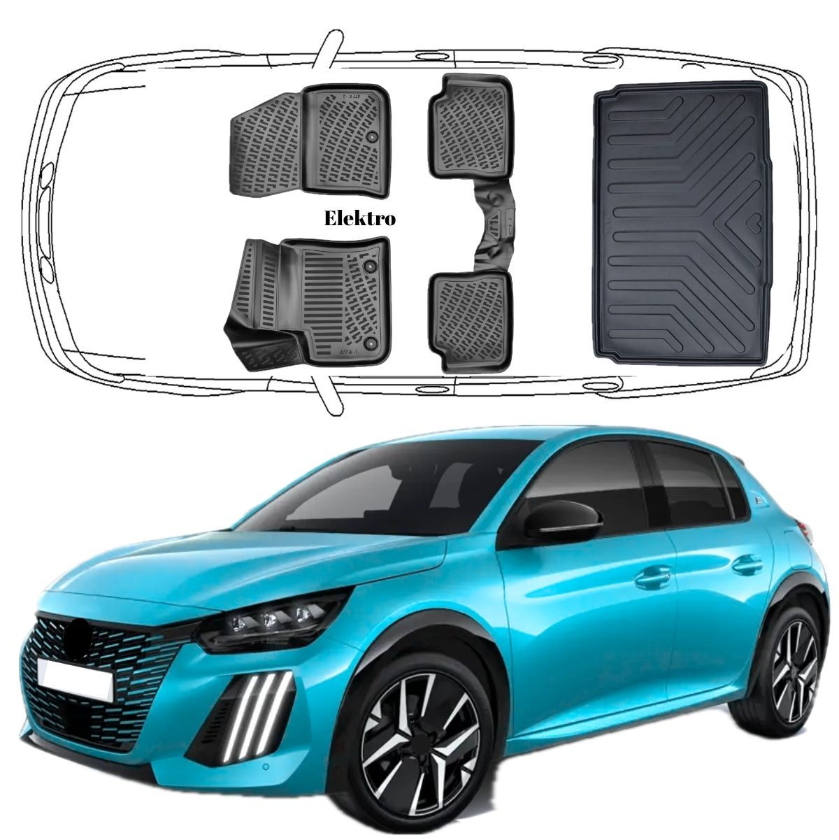 3D Fußmatten & Kofferraumwanne Auto Set Kompatibel mit Peugeot 208 Elektro e-208 ab 2019