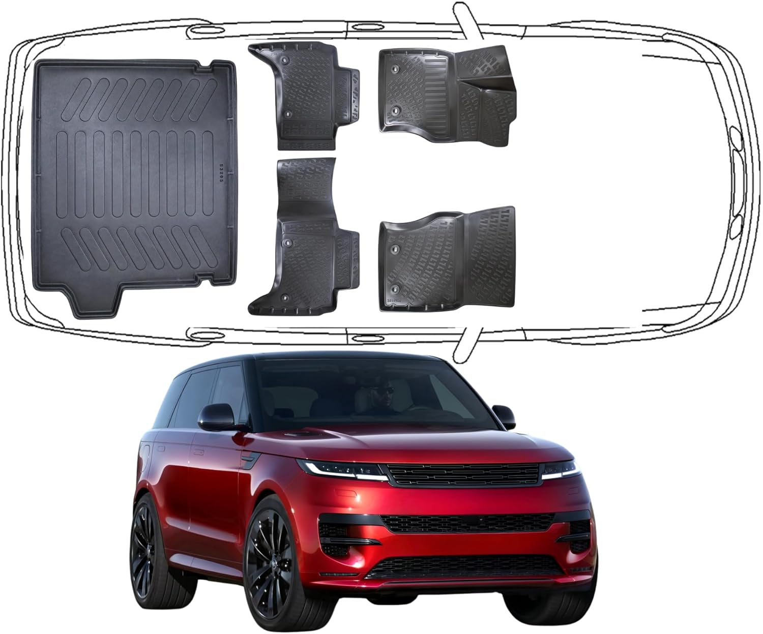 3D Fußmatten & Kofferraumwanne Auto Set Kompatibel mit Range Rover Sport 2.Gen 2013-2022