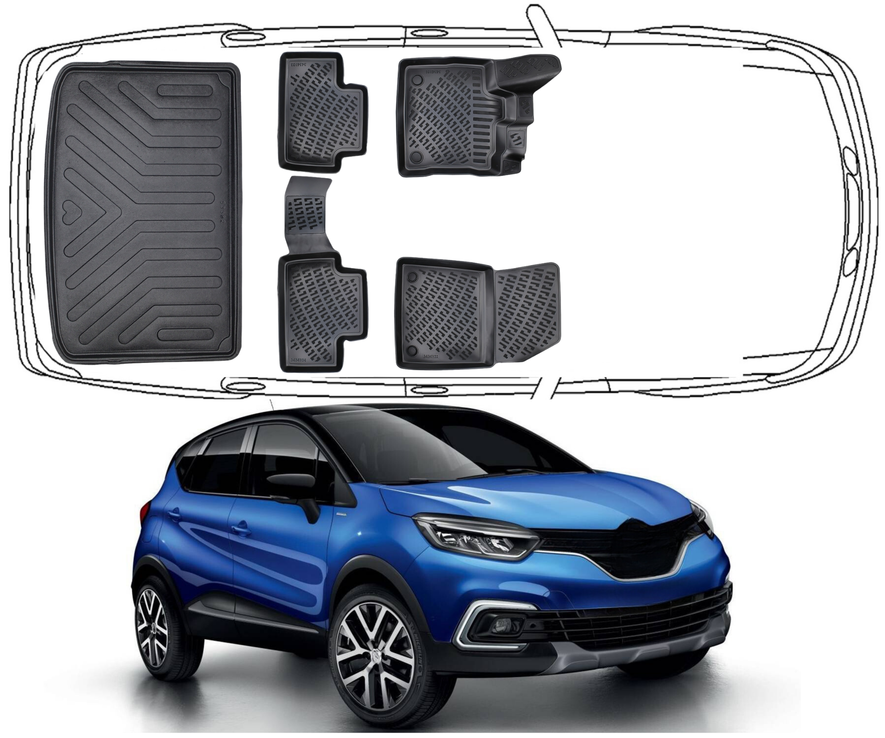 3D Fußmatten & Kofferraumwanne Auto Set Kompatibel mit Renault Captur 1.Gen 2013 - 2019