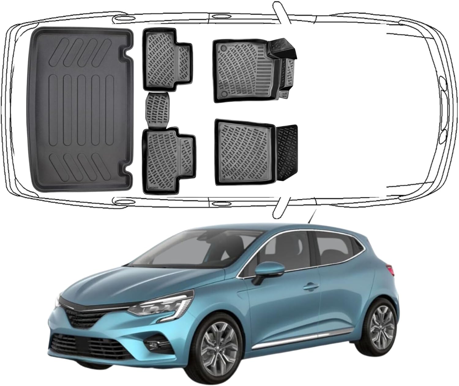 3D Fußmatten & fester Boden Kofferraumwanne Auto Set Kompatibel mit Renault Clio 5 HB 5 2019 - 2024