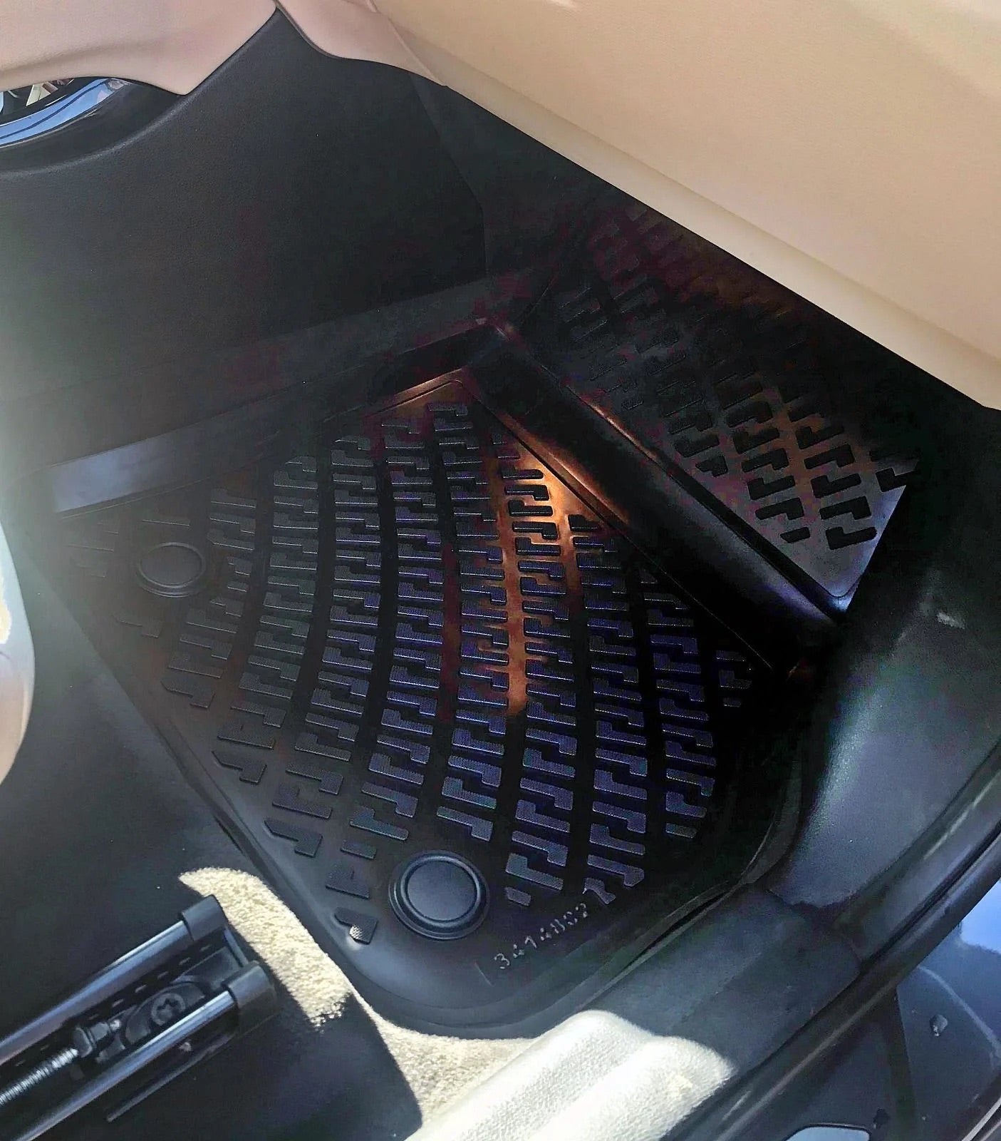 Da die Matte aus sehr weichem und natürlichem TPE-Material besteht, muss sie bis zu 48 Stunden im Auto verbleiben, um sich perfekt an die Form des Fahrzeugbodens anzupassen.